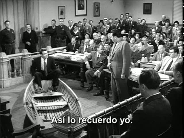 Atención con la aparición del enérgico Raymond Burr (el inolvidable Sr.Thorwald de “Rear Window” de Alfred Hitchcock), como el fiscal Frank Marlowe, que se encarga de acusar a Eastman y ridiculizarlo en el juicio, haciéndolo subirse a un bote de madera.