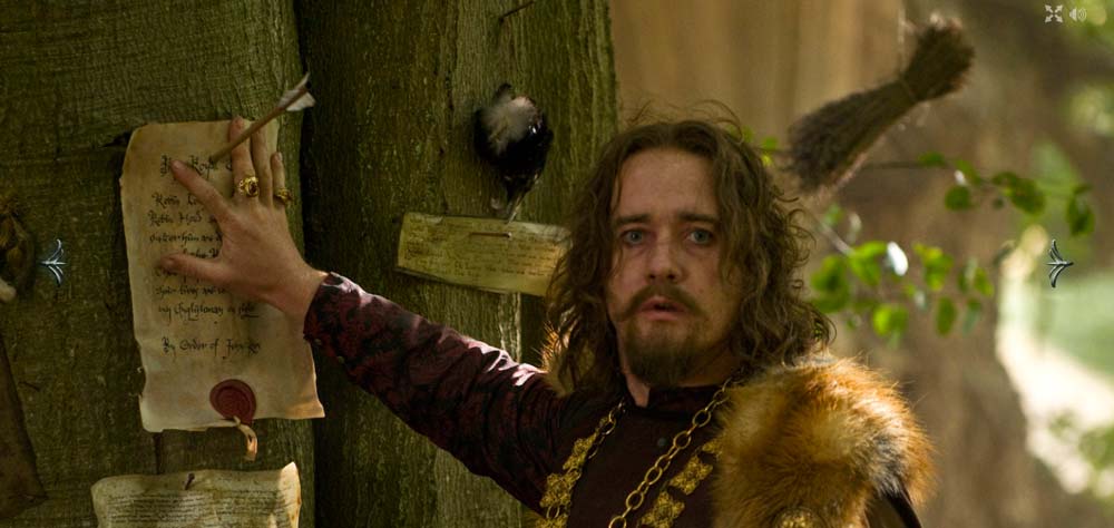 Ocupando su nombre, tierras y mujer (Lady Marion, interpretada en piloto automático por Cate Blanchett), Robin pronto se establece con sus alegres hombres del bosque en un pequeño poblado. Muy lejos de ahí, dos villanos de caricatura, el ex Príncipe Juan (Oscar Isaac), hoy nuevo Rey, y el inmensamente maléfico consejero Godfrey (Mark Strong) se reparten los tesoros del Reino, cada cual a su manera, aumentando los impuestos el primero, y planeando una invasión francesa el segundo; y en general, abusando de cualquier ser vivo, entre ellos, la paciencia del espectador. Hay un tercer villano, el famoso Sheriff de Nottingham (Matthew McFadyen), aquí relegado a un verdadero payaso sin real poder ni voto, así que es mejor olvidarlo.