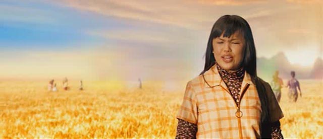 Pero nada de esto último importa -tanto- porque Susie Salmon, después de este hecho tan triste, ahora vive en su propio mundo feliz lleno de vibrantes colores, con electrizante estética de los setentas, lleno de luz y fantasía donde todo es posible, mientras tanto ella se lo imagine y decida dejar de mirar atrás. Es el «in between» como en un dibujo infantil de su hermano pequeño aparece -inexplicablemente- en Pennsilvania; es entonces, su propia versión del cielo. Afortunadamente no esta sola -que aburrido- porque esta versión kitch-new age-digital del paraíso celestial esta poblado por, que maravilla, otras niñas violadas y asesinadas por el mismo George Harvey. Desde este, su cielo, Susie podrá ver y comunicarse con su atormentada familia, que intenta desesperadamente dar con su cuerpo y con el asesino.