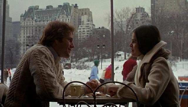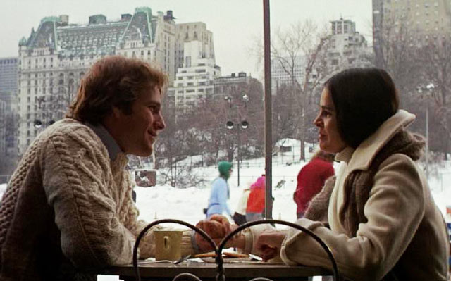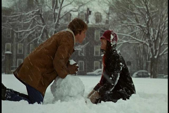 Atención con algunos buenos diálogos, los varios planos secuencias de seguimientos que Hiller utiliza esporádica y correctamente, y la secuencia musical en la nieve que ocurre en la universidad y su estadio; con creación de ángeles en el suelo incluída (una imagen repetida hasta el infinito en todas las películas románticas, se me viene a la cabeza la muy superior Eterno resplandor de un mente sin recuerdos de Michel Gondry), guerra, hombre nieve y otras situaciones que fueron improvisadas entre el director y sus dos actores para darle mayor atmósfera y espesor a la relación. Algo tan simple, pero que curiosamente, funciona muy bien.