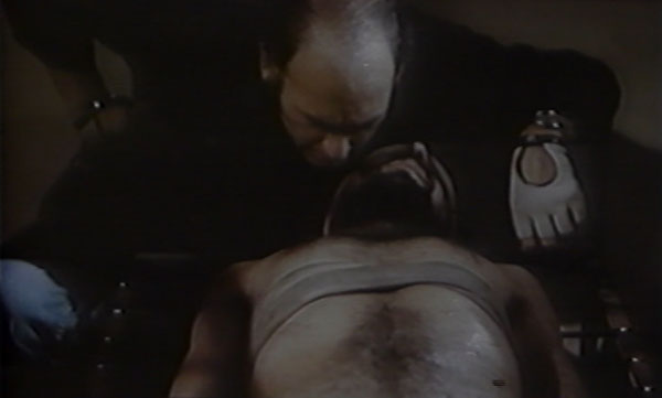 El diálogo entre ambos está controlado por una sicóloga rubia, muy bien vestida y amable, que ordena los tiempos y la agresividad de cada intervención del Jefe. Más lento o más rápido, ella sabe cuál es la medida precisa para “ablandar” al prisionero. La fluidez de las transiciones temporales que hay en las intervenciones de Nelson Villagra en escena, al pasar de la violencia a la extrema violencia, resultan impactantes. La composición de su gestualidad, su semblante indiferente hacia su rol de verdugo y el que es uno de los recursos expresivos que más domina: la voz, son claves a la hora de construir la secuencia. Su vozarrón fuera de campo, nos hace entrar en la atmósfera y en el punto de vista de Montenegro, quien al igual que el espectador, no puede ver a su torturador, ya que tiene los ojos vendados. Hay un corte y la imagen se abre a un plano general del Jefe frente a su víctima. De un minuto a otro, el descontrol se apodera del personaje de Villagra, de tal modo que ni siquiera la esquematización de la escena, agota el miedo y la aversión. Ahora con una tonalidad agresiva y amplificada, “El Jefe” lanza su ultimátum:
