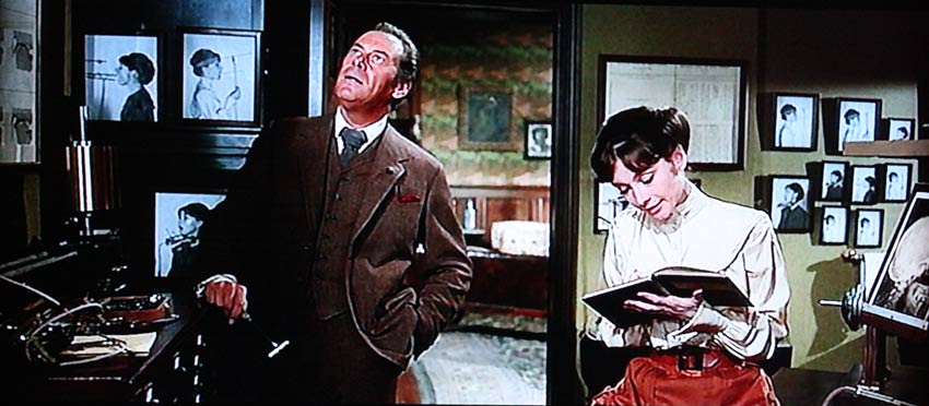 Pero bueno, vamos a la película. Audrey Hepburn protagoniza «Mi bella dama» (My Fair Lady, 1964) –que por estos días se presenta en Santiago en un musical– como la malhablada florista inglesa Eliza Doolittle -¿acá le dirían mas bien “flaite”?- que se convierte en parte fundamental de una apuesta de un aburrido profesor de lenguas llamado Henry Higgins (Rex Harrison) con uno de sus aún más viejo y aburrido amigo. La apuesta consiste en convertir al patito feo en un cisne de alta sociedad, en muy poco tiempo. Obviamente y en el camino, el profesor y la alumna se enamoran.