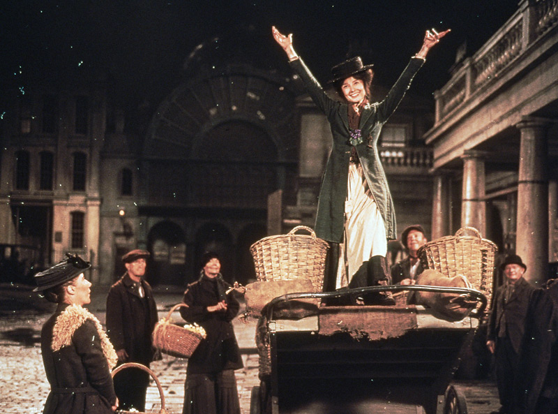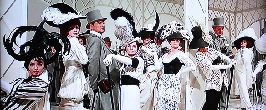 Clásico musical dirigido por el bueno de George Cukor (del que vi una gran película decenas de “Una película al día” atrás) y que funciona perfectamente; sin mayores sorpresas en sus números musicales -“Loverly”, que posteo abajo, me parece notable- pero demostrando de sobra que Audrey Hepburn, a pesar de no estar cantando en prácticamente ninguna de las canciones (la voz es de Julie Andrews y/o Marni Nixon), tiene más que suficiente materia de estrella para sostener bellamente no sólo a su personaje, sino que a toda la película y a todo Londres, dividido aquí curiosamente entre los ricos de blanco y los pobres de negro.