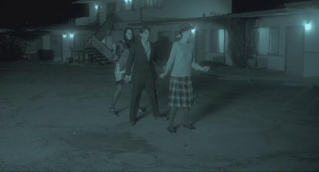 Al descubrir una foto de Kate dentro del auto, Kate deja de ser tan sólo una voz para aparecerse visualmente ahora dentro del auto –Mercer ya puede dejar de imaginar distintas mujeres- como una especie de presencia, hablando junto al protagonista, en una bicicleta con él, en un gratuito pero buen baile en homenaje Bande à part (1964, Jean Luc Godard) afuera de un motel, y por supuesto, en sus sueños.