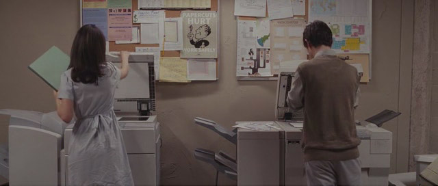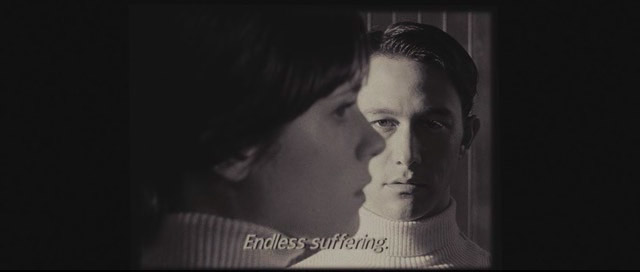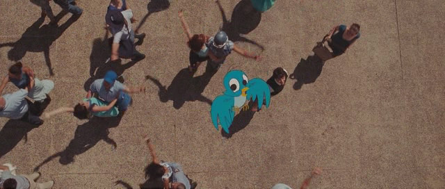 Hacia el final, ya habremos pasado tanto por un idílico musical (con pájaro de dibujos animados incluído); un ensayo de familia dentro en un departamento falso (piloto) dentro de una multitienda, veremos como un sombrío y depresivo mimo cachetea al protagonista (haga lo contrario aquí, querido lector. ¡Malditos mimos!) cuando Tom cae inesperadamente dentro de una película Godardiana, depresivas referencias a Persona (1966) y El Séptimo Sello (1957), ambas de Ingmar Bergman, y una variedad de otras situaciones que evitaré aquí y que reflejan, además de ser un gran comentario al cine dentro del cine, en fragmentos, la relación de Tom y Summer.