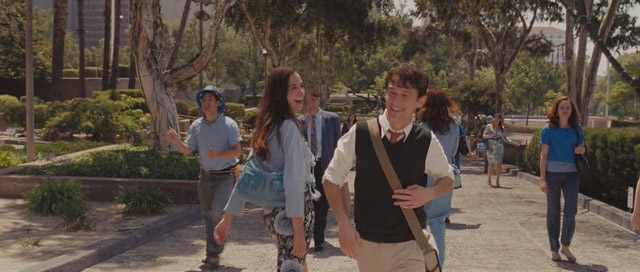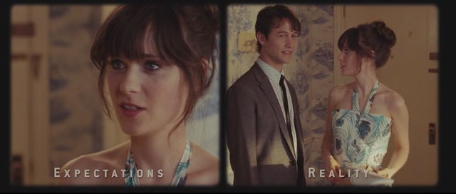 La estructura es simple. La infinitamente reutilizada historia boy meets girl (seguida de boy loses girl y boy gets girl at the end), que hemos visto tantas veces si cambiamos personajes, locaciones y también directores, tanto grandes (John Hugues, Frank Capra) como pequeños (Cameron Crowe, Nora Ephron), pero aquí está desordenada. Se eligen algunos días y momentos dentro de los quinientos días de Tom en su relación con Summer, anticipando las escenas con los títulos del número de día representado – estos pequeños fragmentos construyen también historia en las imaginarias elipsis, cada espectador ponga lo suyo- tenemos así el día 1: el encuentro, día 30, día 150, etc.