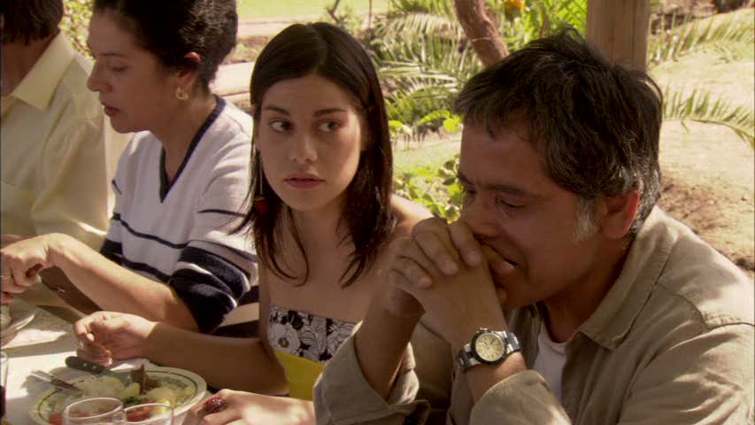 Debe ser la primera película chilena que transcurre, casi enteramente, en torno a un interminable asado dieciochero. En una parcela, dos familias y sus conocidos se reúnen, además de las fiestas patrias, para celebrar la próxima unión de sus hijos, Macarena (Adela Secall) y Álvaro (Tiago Correa). Macarena, intermitente protagonista en esta historia más bien coral, es la hija de Antonio, un (ex)militar (Nelson Brodt) e Isabel (Marcela Osorio), su siempre afligida madre, los anfitriones de la fiesta. A esta se unen una veintena de variopintos personajes: un anciano en silla de ruedas idéntico a Augusto Pinochet, una nana mapuche y otra peruana, unos insoportables cuicos, una gringa y su marido que fue exiliado, Ernesto (Patricio Contreras, La Frontera) el “tío perdido” y sin pelos en la lengua, fanáticos militares, socialistas, ex comunistas, un cura, un abogado, la “tía perdida” suelta de ropas, sobrinos, primos, amigos, etc. Un zoológico nacional que está más que claro que pretende representar. El problema está en el cómo.