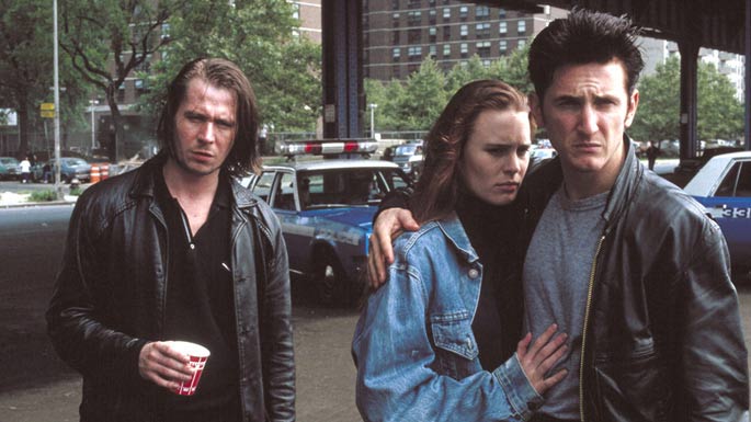 Pero es en el personaje de Jackie, personificado por Gary Oldman, donde la película toma peso, gravita hacia una tragedia de un hombre impulsivo, inmaduro, violento, excesivamente emocional. Oldman, el gran actor de los noventas le da vida, el mismo que hoy adorna la cartelera como un secundario en el Hollywood contemporáneo y que hoy lo recuerda casi exclusivamente para villanos, famosos magos trágicamente fallecidos y el comisionado de policía en una ciudad cada vez menos gótica, donde afortunadamente el maquillaje estético se ha ido (Batman y Batman Returns, 1989-1992 Tim Burton), para dejarnos un mundo realista de mafias y traiciones. Un gran actor al que le dedicamos un programa especial en El mundo sin Brando recientemente, y donde discutimos también sobre este notable filme. Porque es con Oldman y su caracterización de este hombre perturbado que intenta sostener y amarrar desesperadamente su concepto de familia y de honor, y que deposita toda su ingenua confianza en hombres de su sangre que no la merecen, en donde se encuentra el verdadero centro emocional y detonante para el personaje de Penn en sus últimas acciones.