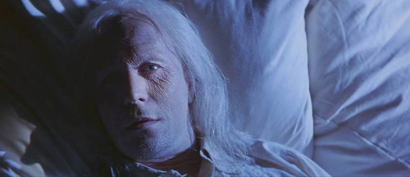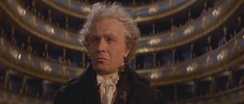 La película comienza con una infame escena con Oldman en un maquillaje del más puro Cine B (se ve como un hombre de 200 años con piel de pescado), iluminado por relámpagos al son de un famoso acorde (ta-ra-ra- RAN!… ta-ra-ra- RAN!. ¿ud. ya adivinó?) que anuncia, claro, la muerte apoteósica del genio. Así mueren ellos, con manifestaciones atmosféricas.
