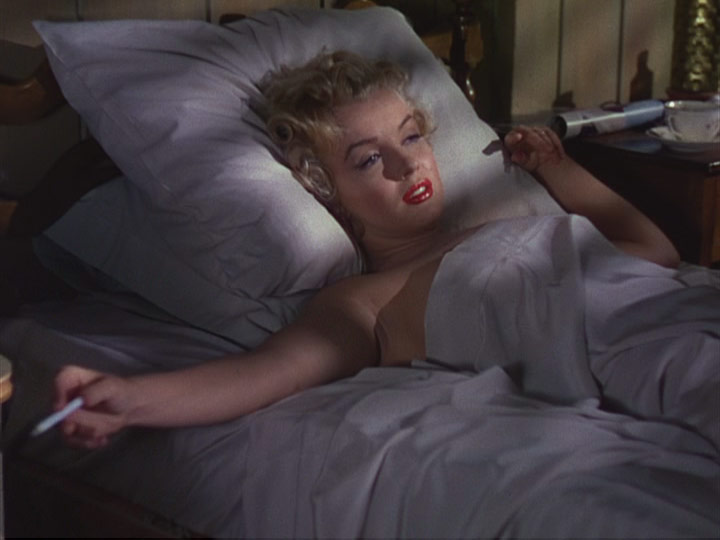 No había visto nunca a Monroe en un papel alejado de la comedia o de su famosa rubia bobalicona pero encantadora (al que no haya visto «La Comezón del Séptimo Año» le sugiero verla) y bueno, vaya que sorpresa. Desde su introducción, el personaje de Monroe ya se define, bella, sensual y pérfida. En una oscura cabaña para turistas, Rose Loomis (Marilyn Monroe) desnuda bajo las sábanas y con las piernas abiertas bajo ella, fuma y mira el vacío. Pero inmediatamente, con el sonido de la puerta, esconde el cigarro y finge estar dormida cuando George Loomis (Joseph Cotten, La Sombra de una duda, El Ciudadano Kane, El Tercer hombre), su depresivo marido, entra a la habitación. A George ya lo hemos visto, minutos antes, caminando solitario entre las rocas cerca de las catarátas del Niágara, con el amanecer, el agua y el rocío golpeando su cara en la introducción del film. George, parado detrás de ella, la nombra tímidamente: “Rose”. Silencio. Sin resultado, el hombre se va a dormir, inquieto, a una cama de una plaza junto a la de su esposa. Cierra sus ojos. Monroe abre los suyos: lo mira brevemente. Sonríe con desprecio y malicia, se da vuelta en la cama. El juego ya comenzó y tenemos asientos en primera fila.