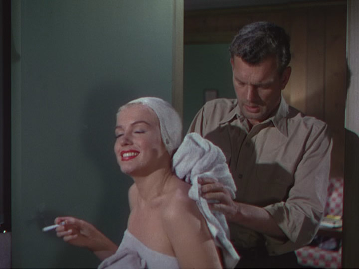 Corte. Llegan al conjunto de cabañas turísticas una pareja de enamorados: Los Cutler. El hombre, llamado Ray (un insoportablemente feliz Max Showalter) y la bellísima Polly, su mujer (Jean Peters, me recuerda un poco a Sherilyn Fenn). Un poco más jóvenes que los Loomis, uno para el otro, los Cutler vienen a disfrutar de una postergada luna de miel. Sin quererlo, serán los testigos-víctimas perfectos para Rose, que logra que su marido protagonice un show de celos frente a ellos, se comporte erráticamente y fundamente así, una supuesta teoría de suicidio del mismo. Sin quererlo también, Polly Cutler se inmiscuirá más de lo previsto en la intriga y descubrirá que Rose no es quien dice ser. La supuesta muerte de su marido, tendrá consecuencias inesperadas para ella y para la propia Rose.