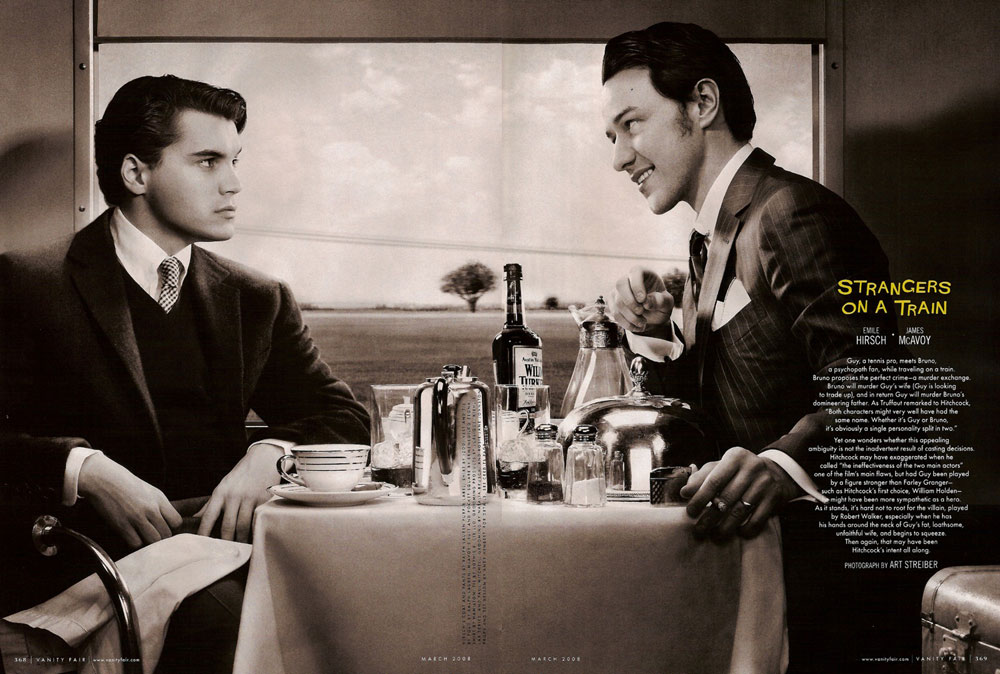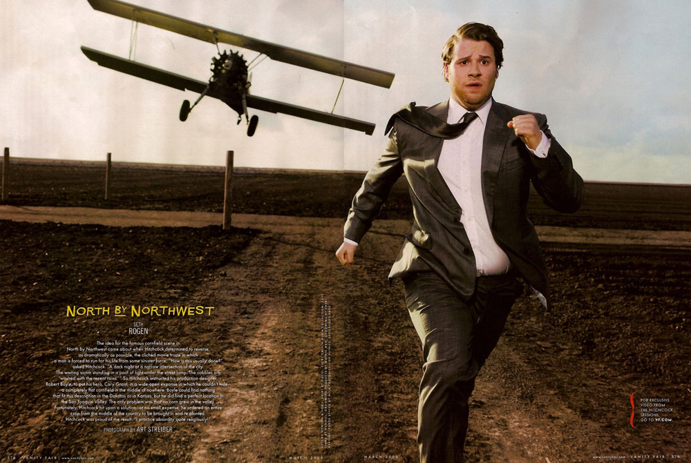 Las imágenes hablan por sí mismas: en pares, primero las fotografías originales extraídas de las películas (o bien material publicitario) creadas por Alfred Hitchcock que sirven de inspiración y luego las imágenes de Vanity Fair, estos originales REDUX fotográficos. Haz click en las recreaciones para verlas un poco más grandes, y visita el sitio web original para verlas en una resolución aún mayor. ¿Por qué no? van también algunas citas de cada película, que encontré para acompañarlas. Disfrute.