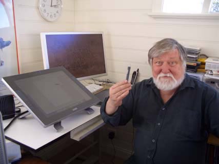 I’ve been told all my life, I’m an artist, an inattentive student, a frustrated writer, a nerd, even, a know-it-all. Truthfully I was never very good at anything except drawing. So I found myself posing as an artist for most of my life. This ongoing ambivalence about my ability results directly from having to grow up limited to a methodical, certainly slower, process of learning. As a result I have always been aware, of how very much I do not know. – Ron Cobb