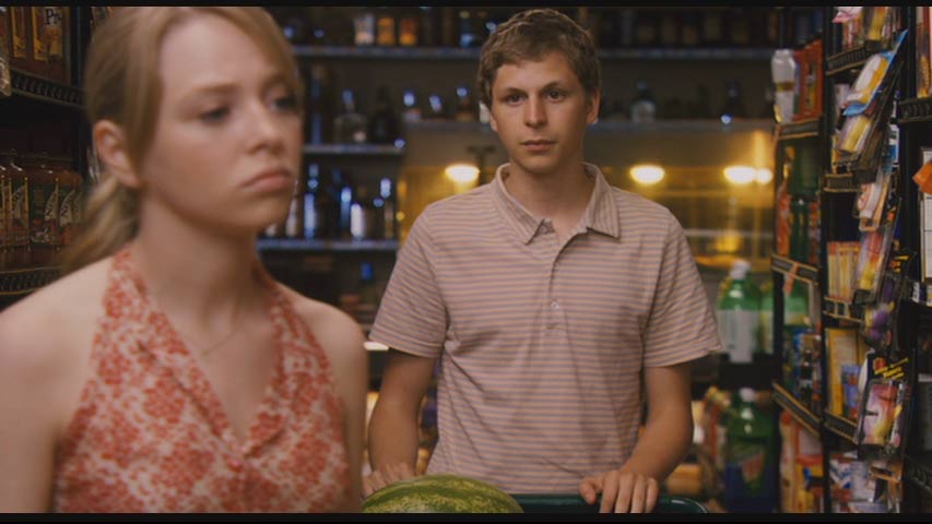 Nick Twisp (Michael Cera) vive una aburrida y solitaria vida con su madre separada y sus rutilantes novios de pacotilla hasta que en un viaje de vacaciones con su extraña familia, se establecen en un trailer park –que cosa mas yankee que un trailer park– donde Nick conoce a Sheeni Saunders (Portia Doubleday, excelente). El director Miguel Arteta –que hace un muy buen trabajo- coloca perfectamente la cámara lenta, la música heroica y no queda duda que Nick ya está profundamente enamorado. Aunque Sheeni dice que son las hormonas.
