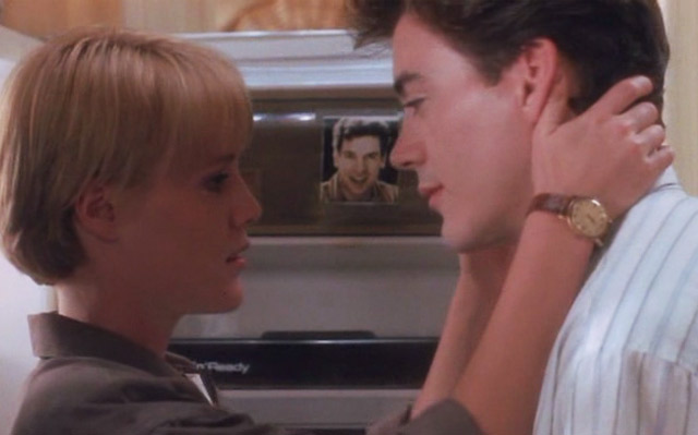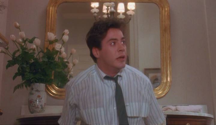 Arrendada en VHS a principios de los 90’s en mi casa –está justo en el límite así que no recuerdo si la vi en Lima o Santiago- y, al igual que con “Novia se Alquila” (1987), tuve que volver a verla la semana pasada, casi veinte años –oh que viejo me sentí al escribir esa cifra- después de la primera vez que la vi, tan sólo para poder recordarla en detalle y comentarla en el último capítulo de EMSB. Pero al contrario de la película del chico que cortaba pasto los siete días de la semana acompañado de su inseparable boina negra y que arrendaba una porrista rubia y consumista para ser popular, acá si que tenemos un cine un poquito más noble. Comedias ligeras ambas, están separadas tanto en su temática como por su contexto: principalmente por las edades y etapas de vida de sus protagonistas; en la primera un adolescente nerd llamado Ronald (Patrick Dempsey) a punto de salir del colegio y en la celestial segunda, un recientemente recibido profesional –el periodista Alex Finch- interpretado por el ya entonces notable Robert Downey Jr., unos pocos años antes de que el actor entrase a su apocalipsis personal.