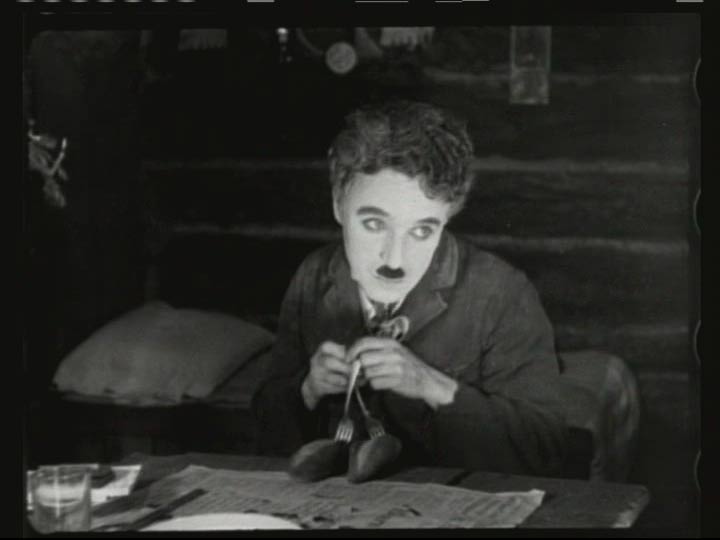 Imposible no recomendar esta maravilla, incluyendo la genial escena en que Charlot celebra su amor pensando que esta solo en la cabaña (y la mujer lo mira espantada desde la puerta), o el ingenuo gag –y tan imitado en cientos de dibujos animados- donde uno de los compañeros de cabaña de Charlot, tan muerto de hambre como él en el frío invierno, empieza a delirar y lo ve momentáneamente como un pollo gigante: ¡delicioso!.
