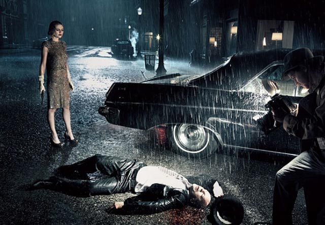 Mujeres fatales, policías, detectives corruptos, asesinos a sueldo, viudas, y una ciudad de luces, neón, neblina y lluvia de fondo. Sexo, crimen, violencia y casi siempre en blanco y negro. Que puede ser mejor. Este es el gran tributo al Film Noir, el Cine Negro norteamericano de los 40’s y 50’s (escucha un programa de EMSB sobre el tema aquí), que la destacada fotógrafa Annie Leibovitz dirigió y fotografió, acompañada de Michael Roberts conceptualizando la estética detrás del lente. Esta producción fue realizada para la edición de Hollywood 2007 de la revista Vanity Fair.
