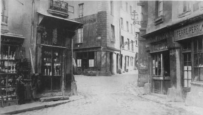 Una típica calle parisina antes de Haussmann