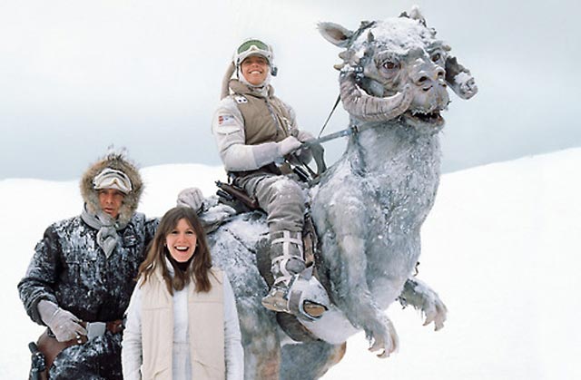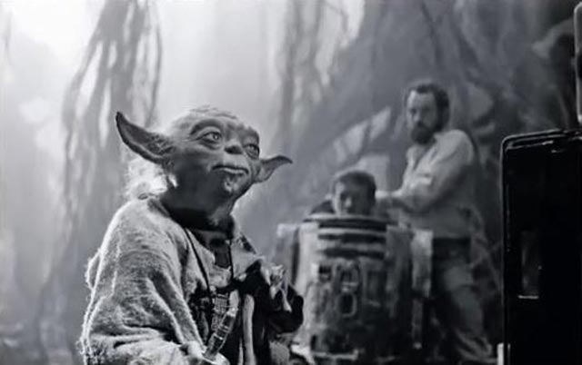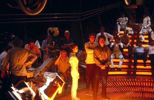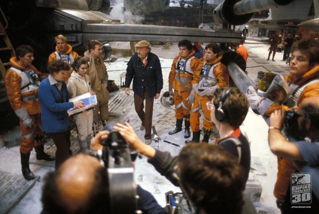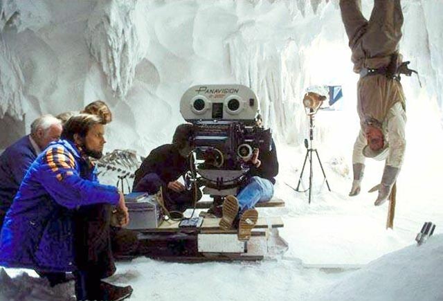 Una película donde se esconde y revela una tragedia Shakesperiana, porque ¿que puede ser más terrible que esa famosa revelación final del villano al joven rebelde, que intenta inútilmente vencerlo?. Dotada además de un sentido cómico equilibrado que acompaña las aventuras entre asteroides, princesas, robots y fantasías, El Imperio Contraataca grabó imágenes y sonidos de forma permanente en el cerebro de generaciones de niños y jóvenes, que la vieron con ojos desorbitados, entre ellos quien aquí escribe. Dirigida con precisión por Irvin Kershner, lamentablemente fallecido el pasado 27 de noviembre a los 87 años, va este homenaje a este ícono del séptimo arte y a su talentoso director, con algunas fotografías tomadas durante el rodaje (de diversos fotógrafos) y publicadas recientemente en el fantástico libro de J.W.Rinzler «The Making of The Empire Strikes Back«, que llega justo a tiempo para celebrar los 30 años recién cumplidos de la película.