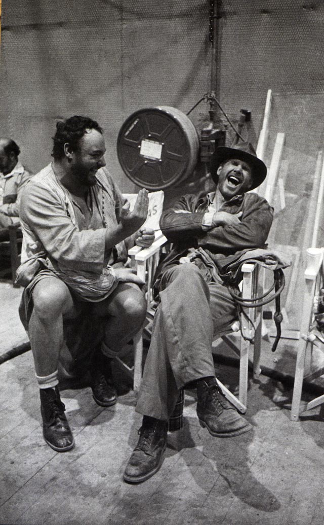 Una joya, me encanta esta imagen. Rhys-Davies y Ford pasándolo bastante bien durante las esperas en el set de «The Well of Souls».