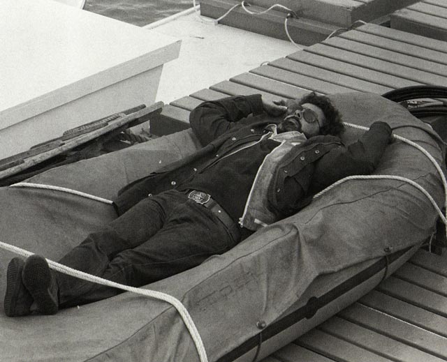 Allen y Ford en la cabina del barco. Stage 5, Elstree Studios.