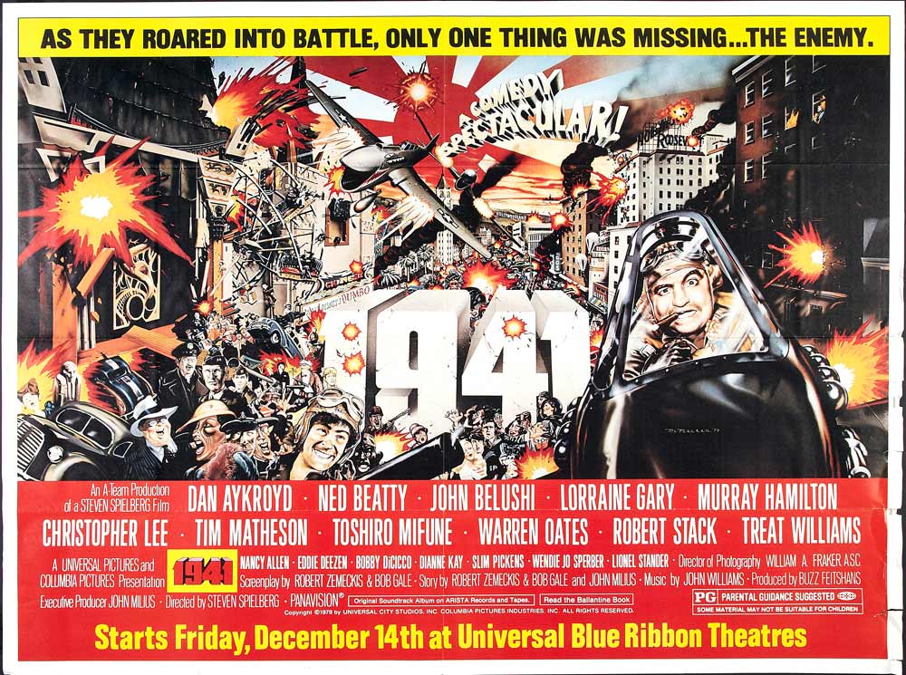 El casting es espectacular: Dan Aykroyd, John Belushi, John Candy, Christopher Lee, Toshiro Mifune (el actor fetiche de Akira Kurosawa), Bobby Di Cicco (The Big Red One), Robert Stack (que se roba la película), Nancy Allen, Slim Pickens (el famoso cowboy-piloto que monta la bomba atómica en Dr. Strangelove…de Stanley Kubrik), Tim Matheson, Treat Williams, Mickey Rourke…en fin, suma y sigue la larga lista de actores que se puso bajo las órdenes de Spielberg, que venía de filmar una obra maestra como Encuentros Cercanos del Tercer Tipo, y que jamás supusieron que estarían participando en una farsa tan grande, caótica e infantil donde las risas son el elemento perdido. ¿Cómo pudo salir todo tan mal?
