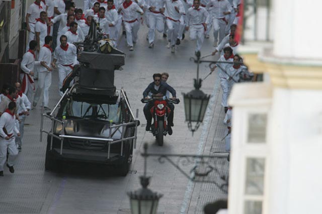 Como nota al margen, me resultó molesta la pretensión de este producto por otorgar suspenso y verosimilitud a una escena con decenas de toros digitales en las calles de Sevilla –que ojo, cuando se filmó con dobles y breves escenas con los actores, sí se incluyeron unos muy pocos toros reales, aunque exclusivamente frente a la motocicleta utilizada por los protagonistas- pero lo que no entiendo, francamente, es que se pretende producir en un espectador con cerebro con la escena final…¿tengo que creer que esa motocicleta que levita por las calles, rompe puertas y esquiva toros de pixeles -que ocupan además un extraño e inmedible espacio- a alta velocidad con el súper agente secreto Roy Miller (Tom Cruise) y June Havens (Cameron Díaz), la mecánica de automóviles antiguos que se enamora de él, están efectivamente ahí? ¿también tengo que creer que no existe la gravedad?. Resulta contradictorio publicitar el rodaje de esta película, subrayando la forma en que Cruise realiza sus propias escenas de acción, para luego ver este esperpento digital. Una gran tontería.