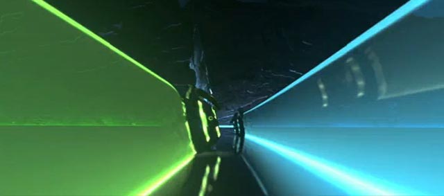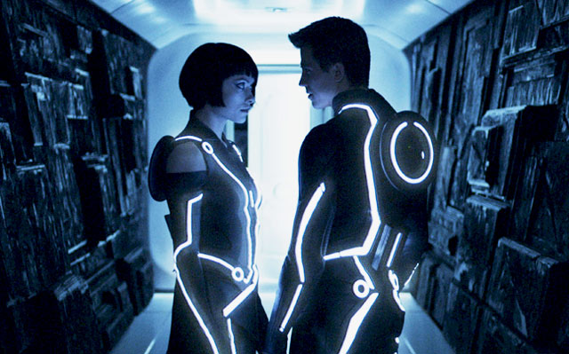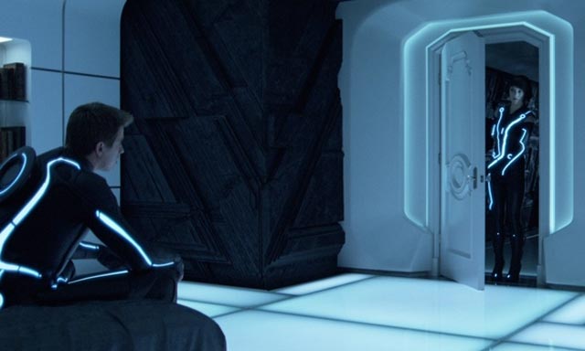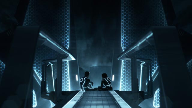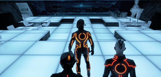 Tron: El Legado (Tron: Legacy) es cine como experiencia casi puramente sensorial/espacial, donde la historia es casi irrelevante lo que, como una moneda, tiene dos caras. Por un lado es visualmente espectacular, como lo fue probablemente la primera en su momento; es además auditivamente intensa, gracias a la música constante de Daft Punk, si bien la inspiración del duo electrónico en la música de Hans Zimmer y James Newton Howard de “Batman Begins” y “The Dark Knight” llega a ser por momentos un poco agotadora y contradictoria. Una película preocupada por la claridad de su diseño y la orientación dentro de sus espacios. Algo que es fundamental en escenas de acción bastante notables como la nueva persecución en las motocicletas cyberneticas (actualizadas), que ocurre realmente en tres dimensiones y en múltiples niveles. Sí, porque esta película además, adherida a la nueva moda Hollywoodense que regresa desde los 80’s y 50’s, esta hecha en 3D. Afortunadamente, es un verdadero 3D, juicioso y que puede entenderse, sin mareos ni fanfarronerías borrosas y oscuras como las de otras películas que buscan el dinero fácil, como lo fue la incomprensible por momentos Lucha de Titanes (2010) y la espantosa El Último Maestro del Aire (2010), con su oscuridad aberrante y un 3D como para quedar totalmente mareado.