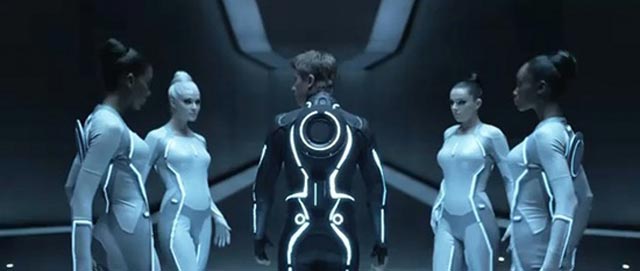 Tron: El Legado (Tron: Legacy) es cine como experiencia casi puramente sensorial/espacial, donde la historia es casi irrelevante lo que, como una moneda, tiene dos caras. Por un lado es visualmente espectacular, como lo fue probablemente la primera en su momento; es además auditivamente intensa, gracias a la música constante de Daft Punk, si bien la inspiración del duo electrónico en la música de Hans Zimmer y James Newton Howard de “Batman Begins” y “The Dark Knight” llega a ser por momentos un poco agotadora y contradictoria. Una película preocupada por la claridad de su diseño y la orientación dentro de sus espacios. Algo que es fundamental en escenas de acción bastante notables como la nueva persecución en las motocicletas cyberneticas (actualizadas), que ocurre realmente en tres dimensiones y en múltiples niveles. Sí, porque esta película además, adherida a la nueva moda Hollywoodense que regresa desde los 80’s y 50’s, esta hecha en 3D. Afortunadamente, es un verdadero 3D, juicioso y que puede entenderse, sin mareos ni fanfarronerías borrosas y oscuras como las de otras películas que buscan el dinero fácil, como lo fue la incomprensible por momentos Lucha de Titanes (2010) y la espantosa El Último Maestro del Aire (2010), con su oscuridad aberrante y un 3D como para quedar totalmente mareado.