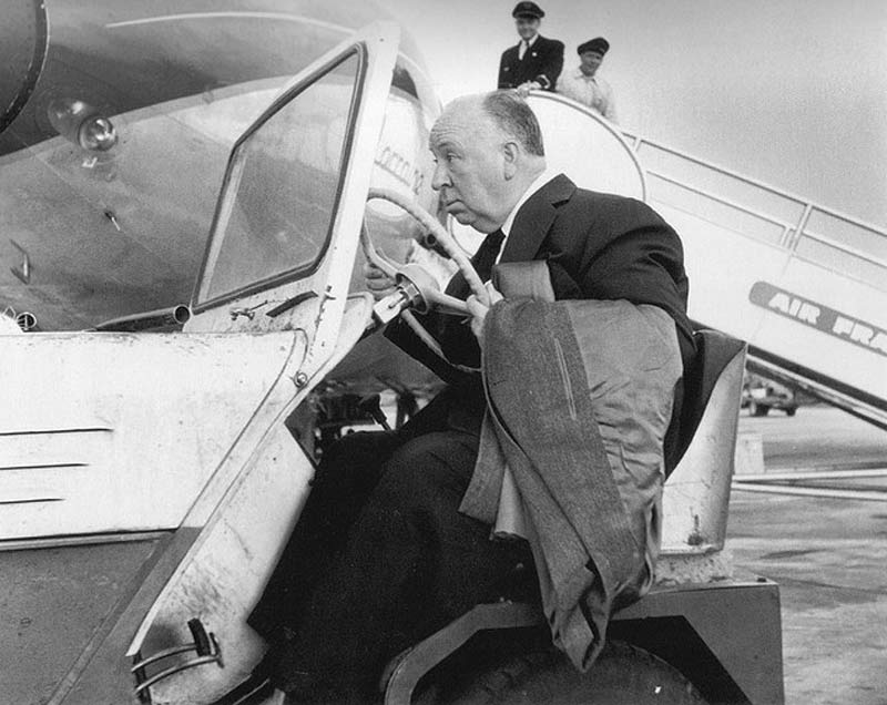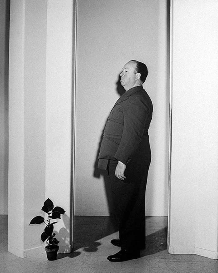 Director de directores, mi favorito junto con el italo americano Brian de Palma, digno estudiante del anterior y luego disparejo aunque fantástico autor, nuestro calvo inglés al que va dedicado este primer post de tres, fue un hombre planificador hasta el último detalle, osado y de un dominio total con la cámara. En su vida doméstica como profesional, Hitchcock era reconocido particularmente por su buen humor y como carismático obeso mórbido de humor british – llegó a pesar 135 kilos en un momento de su vida- tenía un gran don: sabía reirse de sí mismo. Algo que mucha gente, que conozco y ud. probablemente también querido lector, no tiene. Este humor es uno de los temas recurrentes en las fotografías en que posa complacido, muchas de ellas en campañas publicitarias para sus propios films, ideadas em gran medida por él. Otras son imágenes cotidianas, viajes y entre medio de rodajes.