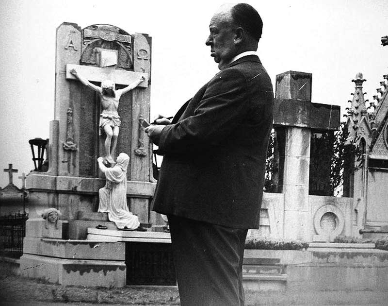 «…llega el maestro del suspenso a esta sección fotográfica, el señor Alfred Hitchcock (1899-1980) con esta selección del algunas fotografías entre las miles que se le tomaron durante los rodajes de algunos de sus 67 largometrajes, tanto en Inglaterra como en EE.UU. Películas en las que Hitchcock fue también el productor (en 28 de ellas), y además, de forma bastante divertida, un actor de brevísimos roles, apareciendo en 36 de sus obras con sus ya muy famosos cameos.