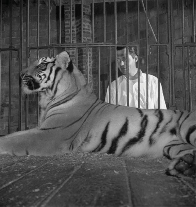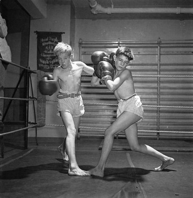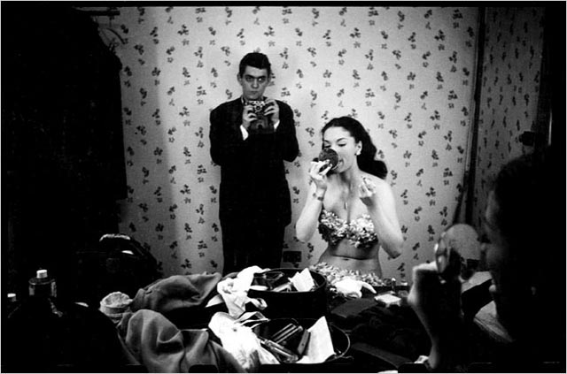 La cita anterior también de Raphael no es de «Aquí Kubrick», sino que de un artículo de The Guardian con respecto a otro libro: «Stanley Kubrick: Drama & Shadows» (Phaidon) de Rainer Crone, y que resume la relación entre Stanley y el mundo a través de un lente como filtro. Esa maravilla impresa que quiero hojear pronto – ah, juntando los pesos para Amazon– es nada menos que la recopilación de las mejores fotografías profesionales que Stanley Kubrick realizó entre 1945-1950, ¡desde los 17 años! para la revista Look, como aprendiz de fotógrafo, fotógrafo freelance y fotógrafo de planta. Uno de aquellos profesionales que aprenden naciendo y haciendo, amparados en considerable esfuerzo y necesario talento. Acá van entonces algunas de las imágenes del libro, que incluye algunas de sus series: el circo, el club de jazz, el boxeo, entre otras. Todas ellas en el estilo llamado «camera noir», pariente de su contemporáneo film noir.