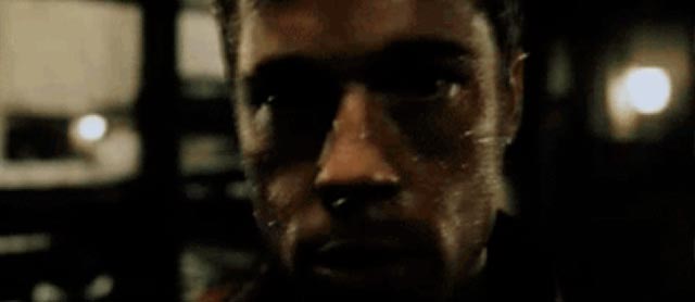Jack ha perdido todo. Su casa y su triste refrigerador repleto de condimentos (y nada de comida) han explotado en el aire. Una llamada desesperada al hombre que acaba de conocer hace unos momentos en el avión: Tyler. El hombre que nunca contesta el teléfono, quien se toma la vida tan a la ligera como Marla (y es raro pensar en los paralelos que se generan entre estos personajes para establecer al personaje de Carter como el objeto del deseo de Tyler/Jack) y es quien entiende el mundo de la manera en que Jack realmente debiera hacerlo. Norton le pide a Pitt alojamiento en su casa hasta que encuentra algo. Pitt le pide algo a cambio: que le pegue lo más fuerte que pueda. Es en este momento que la verdad de Jack se ve distorsionada. ¿Quién acepta la violencia de ésa manera? Como si de un juego se tratara. La catarsis física es una transferencia de un dolor emocional y mental. Las jugarretas de la imaginación, dirían algunos. Un par de puñetazos y el juego se hace costumbre. Pero no están solos. Lentamente Jack comienza a recordar a su animal de fuerza, quien le dice: “Deslízate”. Deja que las cosas sucedan, que fluyan y busquen su propio balance dentro del universo.