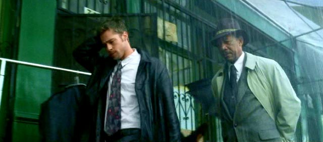 ¿Es tan oscuro el mundo en el que vivimos que un hombre puede perder la fe en él? Este pareciera ser el pensamiento de Sommerset. Desde el comienzo de la película, en el prólogo, vemos como el detective prepara su rutina para un día cualquiera de trabajo. Se encuentra con un horrendo asesinato y nos damos cuenta que él es más inquisitivo que los demás. Es entonces cuando se le presenta el detective Mills (Brad Pitt) quien es un detective novato que ha llegado a trabajar a su división. Es entonces cuando Sommerset sorprendido le pregunta por qué ha pedido el traslado, impactado por que Mills ha solicitado explícitamente viajar a esa ciudad y trabajar en ésa división. Éste es el primer acercamiento