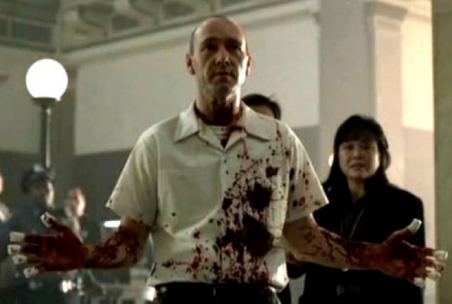 Los asesinatos continúan y pareciera que nunca entenderemos la verdad oculta tras esas muertes, hasta que John Doe decide entregarse. Y es en una escena clave en donde podemos entender y vislumbrar de cierta manera la triada que presentan los personajes con respecto a la visión del guionista y director sobre la maldad y el miedo. Sommerset es alguien que sabe y se ha enfrentado a la maldad durante mucho tiempo, por lo tanto su fe en el mundo se encuentra reducida a su mínima expresión, pero por otro lado es un policía que aún cree que puede luchar contra esa maldad, o por lo menos tratar de mantener un equilibrio entre esa lucha (lo que se ve metaforizado en el metrónomo que guarda en su habitación y que utiliza antes de dormir). Por otra parte, Mills es el joven que cree que puede producir algún cambio, es el típico héroe que se enfrenta a lo desconocido y lo temible, y que gracias a esa valentía puede salir triunfante. Y John Doe es quien tiene una visión similar a la de Sommerset, entiende que el mundo es una mierda, y quiere que las personas se den cuenta de eso. Él no sólo ha perdido la fe en el mundo, sino que en la humanidad completa, y necesita recordarle a la gente en lo que se ha transformado por medio de sus asesinatos. Es entonces que entendemos la gran motivación de Doe, un hombre desconocido, anónimo, que trae un mensaje sumamente potente para remover un poco las consciencias. ¿Y finalmente no se trata de eso el entendimiento del mundo que nos rodea? ¿Qué sucedan acontecimientos sumamente impactantes que nos digan y nos recuerden qué es lo que está pasando alrededor de nosotros? El miedo se ha apoderado de todos, y el miedo está controlado, esposado, en un auto de policía. Pero la obra maestra de John Doe aún no ha llegado a su clímax.