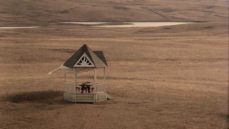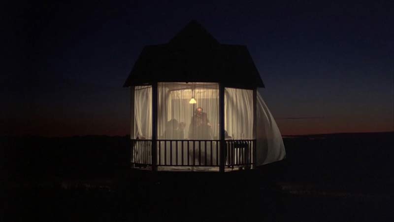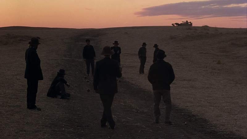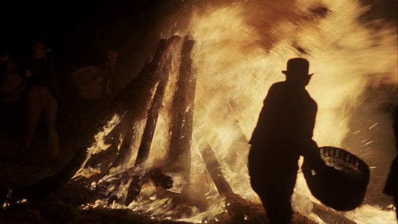 Recuerdos alegres de una vida feliz totalmente falsa, creada a partir de estas múltiples traiciones: a otros, a uno mísmo, a tu felicidad y lo que es peor, al amor (¿de tu vida?). Como el ataque de las langostas y un incendio –muy bíblico todo- que ocurren luego en este campo, esos momentos de felicidad bucólica tan maravillosa, que son imposibles de describir aquí y que sólo se pueden sentir frente al lienzo de Malick –gracias a la dirección de fotografía jodidamente espectacular de Nestor Almendros, la fotografía adicional de Haskell Wexler, la cámara de John Bailey, la dirección de arte de Jack Frisk, la musica de Ennio Morricone y todo el equipo detrás de esta joya– se pulverizan repentinamente.
