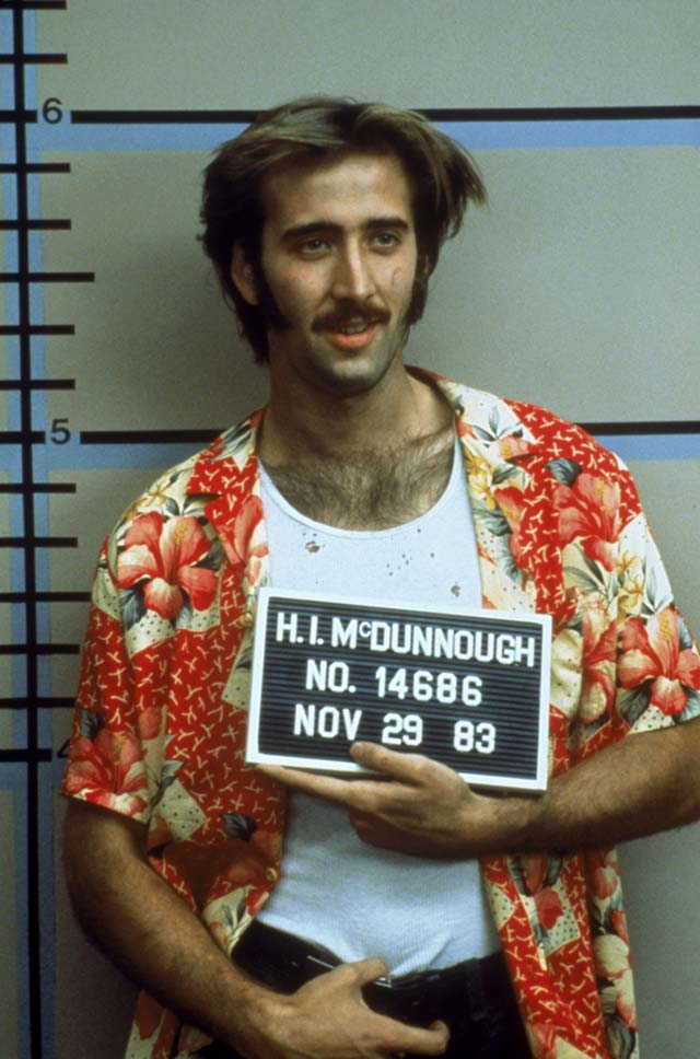 Básicamente trata sobre un torpe asaltante de estaciones de servicio, que es arrestado una y otra otra vez. De tanto ser arrestado, y por consiguiente, fotografiado con la clásica pared de rayitas (nota personal: ¡muero por una foto mía asi!), Nicolas Cage o mejor dicho “Hi”, por “H.I. McDonnough” (algo asi como «Hola McDonuts»), termina enamorándose de la policía responsable de tomar las fotos y es así cómo, a pesar de la seriedad y amargura de ella y la libertina e ilimitada vida de él, decide dar el gran paso y se casa con ella. Todo, dentro del absurdo lógico, es perfecto, hasta que Ed (Edwina) descubre que es infertil. Como buena mujer, su lado policiaco queda renegado por el deseo maternal, cuando casualmente por las noticias se enteran que esposa de quien es prácticamente el dueño del pueblo, ha dado a luz a quintillizos. ¿Para que necesitan cinco si con uno basta? Bajo esta consigna, deciden robar a uno de los bebés, nada menos que a Nathan Arizona Jr.