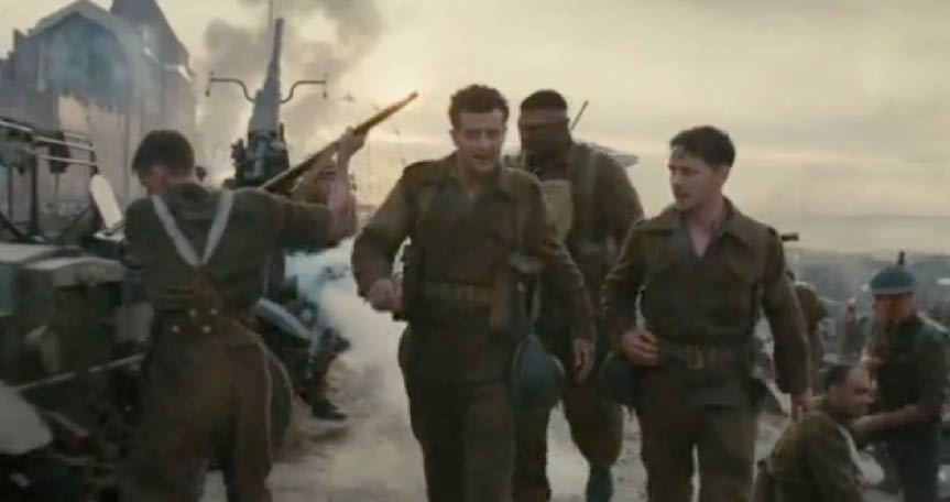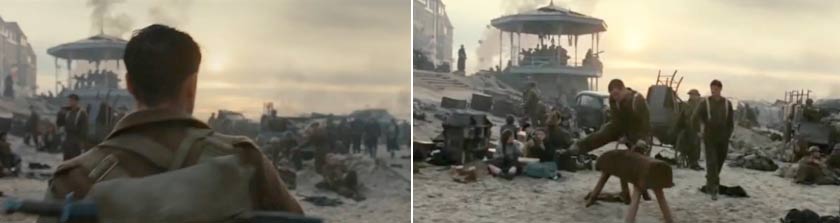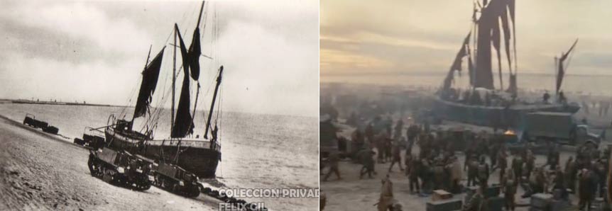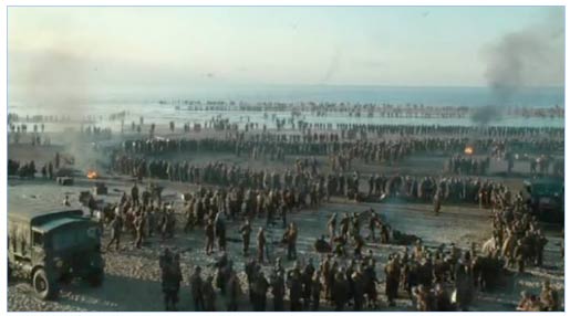 Un par de segundos antes de comenzar el plano secuencia hay una imagen copiada de la historia, donde los soldados aliados, la mayoría Ingleses, franceses y belgas se organizan en filas para ser evacuados (por el inminente ataque de las fuerzas alemanas) desde la playa de Dunquerque ubicada al norte de Francia en Mayo de 1940 en plena Segunda Guerra Mundial. Este procedimiento fue llamada “Operación dínamo”. Como resultado se salvaron cerca de 300.000 soldados aliados.