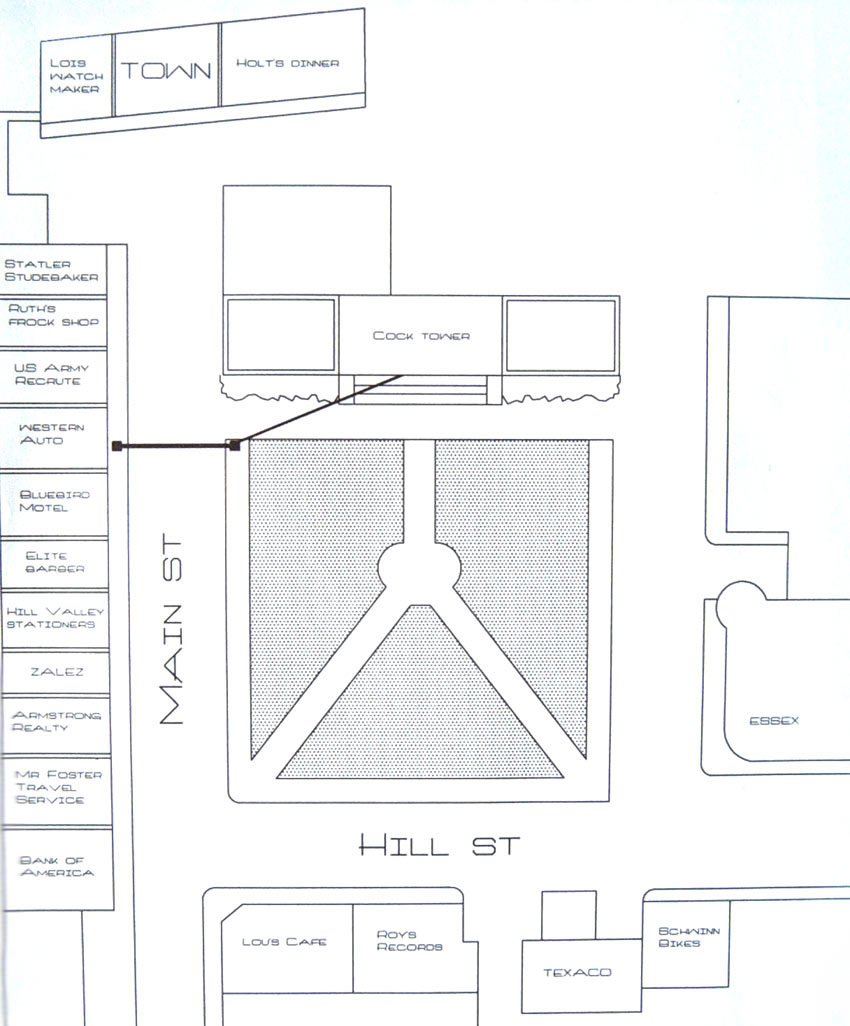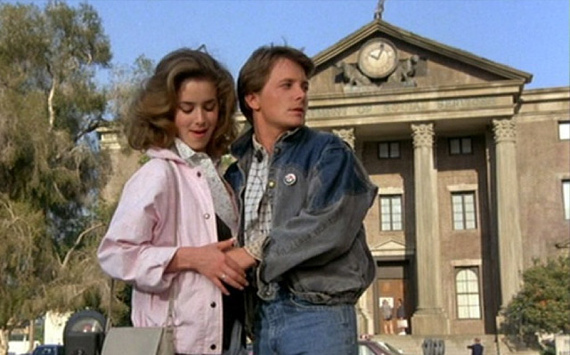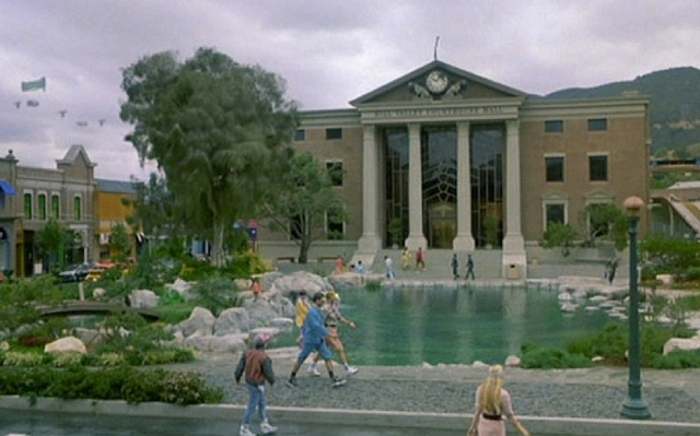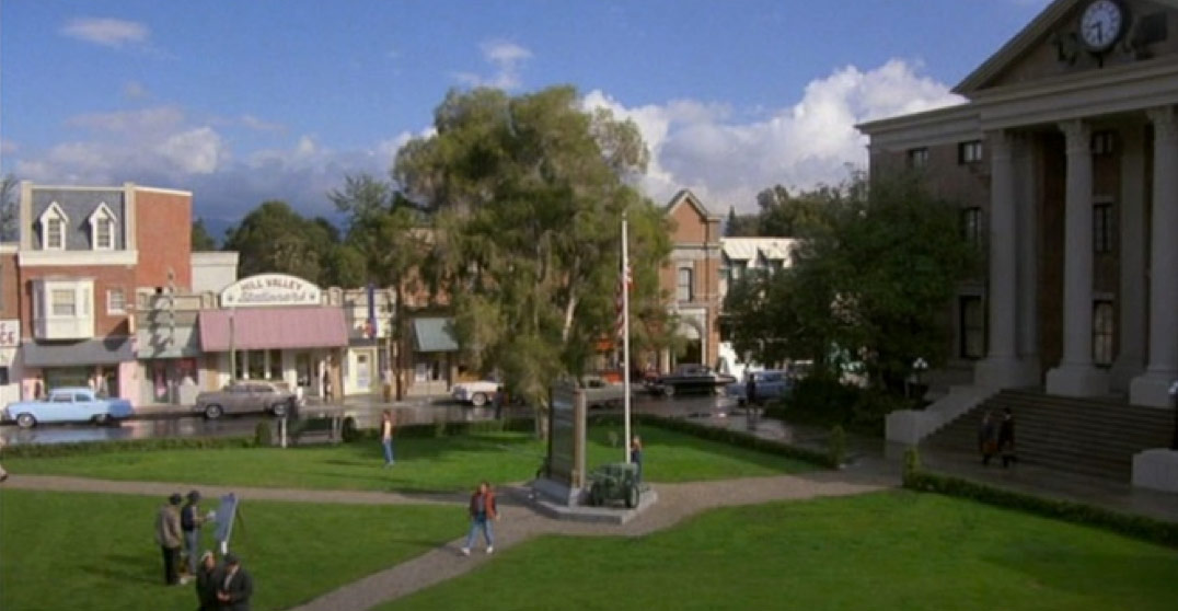 A través de la trilogía (1985-1989), los acontecimientos ocurren secuencialmente en los años 1985, 1955, 2015, un 1985 alterado y 1885. Durante cada uno de ellos, el espectador ve Hill Valley y es capaz de notar el paso del tiempo en las edificaciones de la ciudad. Una de ellas es el Palacio de Justicia, uno de los edificios representativos de Hill Valley y que está presente en cada una de las épocas en las que transcurre la película y siendo parte importante de varias secuencias. Quizás a modo de crítica o incluso sarcasmo, en el año 2015 este edifico está transformado en un Mall.