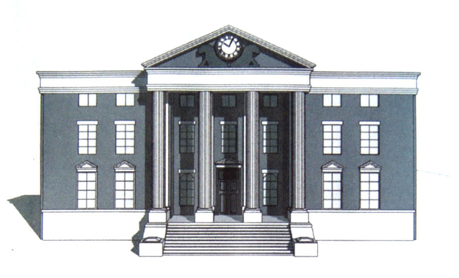 Este edificio característico, que en realidad no es un edificio sino una fachada falsa, tiene la función de ubicar al espectador geográficamente. Como uno de los elementos centrales de la película es el viaje en el tiempo, cuando los protagonistas van de una época a otra, siempre llegan a este sector donde está el reconocido Palacio de Justicia. Es así como reconocemos que están en el mismo lugar geográfico, gracias a la “arquitectura de mentira”.