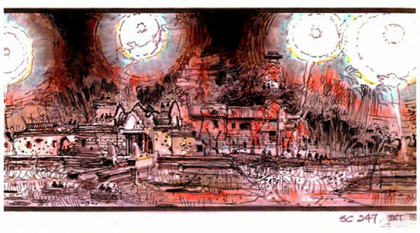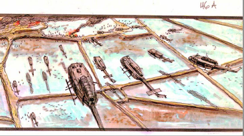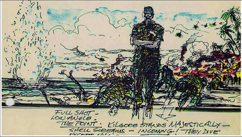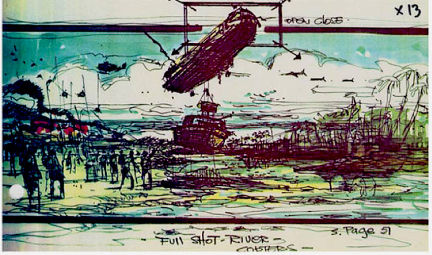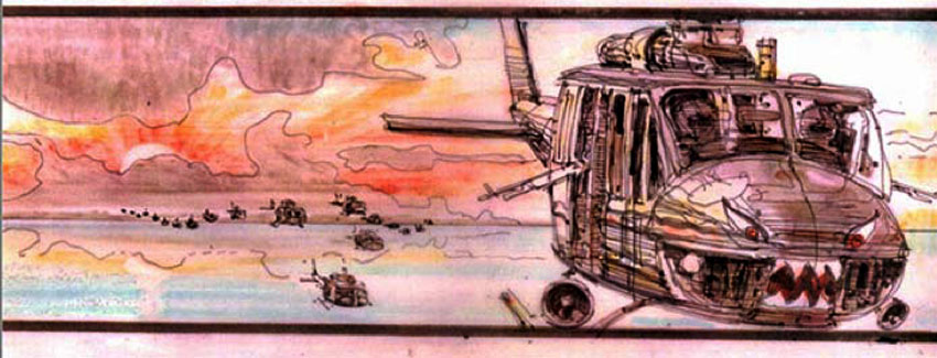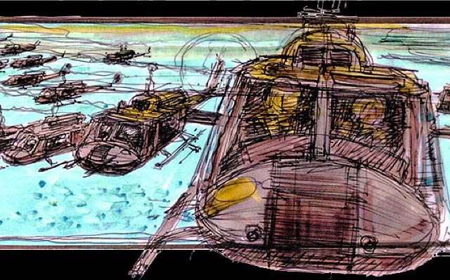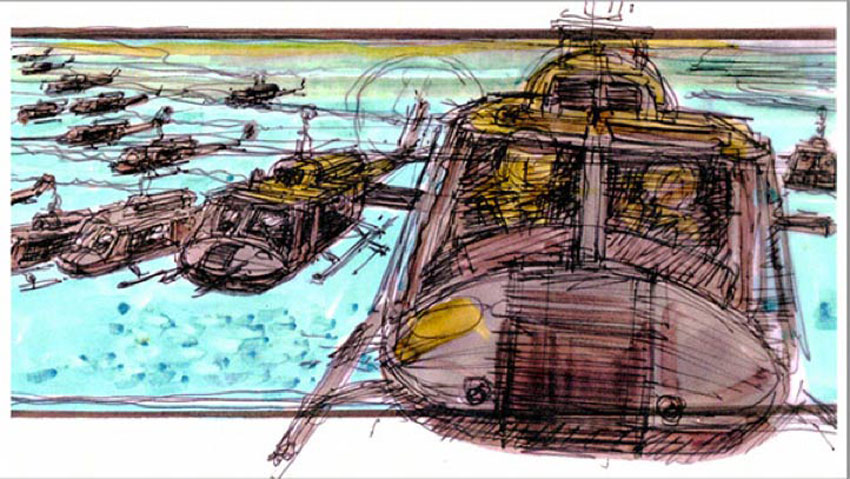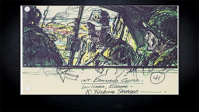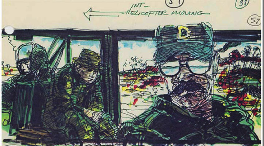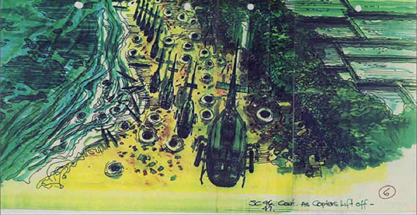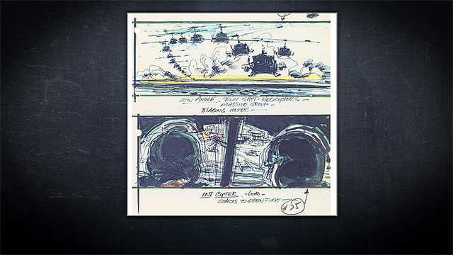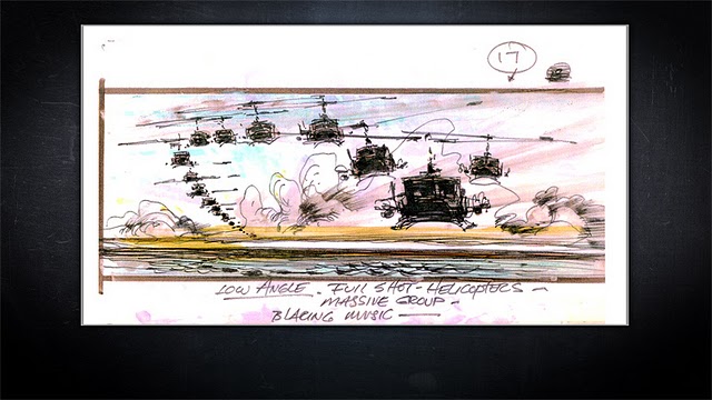 Con el lanzamiento de «Apocalypse Now» en glorioso Bluray (13 de junio), se han publicado hace un mes algunos dibujos de los storyboards originales de la película. A continuación una selección de algunos de ellos, la gran mayoría sobre la famosa escena de los helicópteros en formación, acompañada de la «Cabalgata de las Valkyrias» de Richard Wagner. Las imágenes van antecedidas de un extracto de la novela original de Joseph Conrad, Heart of Darkness, que inspiró la película.