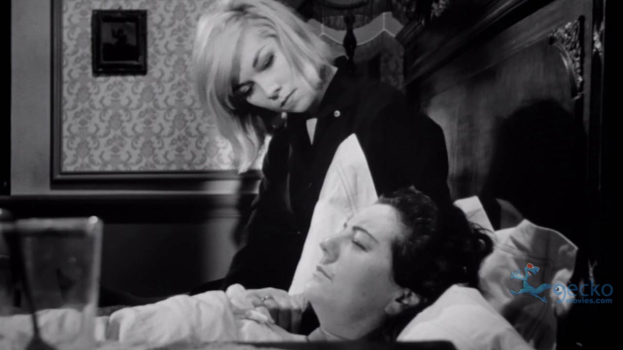 Con un giro argumental que bebe de “Psicosis” (1960) de Alfred Hitchcock, una atmósfera tenebrosa  y una familia totalmente desquiciada en el castillo –ya que además de la madre, están los otros dos hermanos de Richard y la mujer de uno de ellos- “Dementia 13” pasa sin pena ni gloria, con diálogos pobremente dictados por sus actores, contándonos una historia algo maniada y que contiene, a mi gusto, sólo un par de escenas para destacar. Una de éstas tiene a la familia replicando obsesivamente, como todos los años, una ceremonia fúnebre para la hija muerta, hasta que la madre entra en shock y se desmaya. La otra muestra a Louise, en ropa interior… nadando bajo la calma y negra agua del lago -que parece estar a estas alturas lleno de muertos y memorias enterradas- para colocar una trampa para la suegra, sin embargo, descubrirá que en él fondo del lago yace una inmortal niña vestida de blanco, de piel de porcelana, que duerme plácidamente recostada contra el lecho. Se imaginarán la cara de terror con que sale Louise rápidamente del agua…pero nada haría presagiar que al salir del agua ¡habría un terror aún peor esperándola!.
