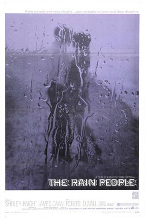 The Rain People, con un notable guión del mismo Coppola, es una película por fin adulta, meditada, con actuaciones inspiradas, en una historia con uno de esos largos viajes de espacio y/o tiempo que el director suele preferir. En este caso, el viaje es principalmente geográfico: The Rain People es ante todo un road movie, uno donde la desorientada Natalie Ravenna (Shirley Knight, excelente) decide abandonar a su marido, tomar el auto, llamarlo por teléfono de la carretera y contarle que está embarazada pero que no sabe a donde la llevará el camino. No será cerca de él, quizás no sea a la maternidad, sin duda será a otra ciudad, y a otro estado de la mente. Un viaje en busca de una felicidad postergada que Natalie, sumisa, ha postpuesto siempre por complacer a otros. Es que Natalie cree que puede encontrarse con la felicidad en otro lugar que no es su presente.