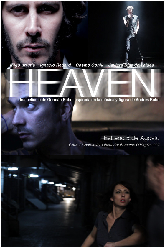 Heaven es un filme que, según el director, busca extrapolar imaginariamente la energía de Andrés Bobe a la actualidad. Así, tres actores encarnan al guitarrista, cada uno según una parte de su personalidad: Iñigo Urrutia representa el renacimiento y la búsqueda por encajar; Ignacio Redard, al músico profesional junto a sus pares; y Cosmo Gonik (Francisco Pizarro), los últimos destellos antes de su muerte. La actriz Javiera Díaz de Valdés, en tanto, encarna a las mujeres en su vida. A través de todos ellos, el espíritu de Andrés Bobe vuelve al Santiago de 2011 y circula, muy apurado, unas horas por la ciudad. La tensión de su regreso moviliza la historia. Éste será su último saludo y despedida.