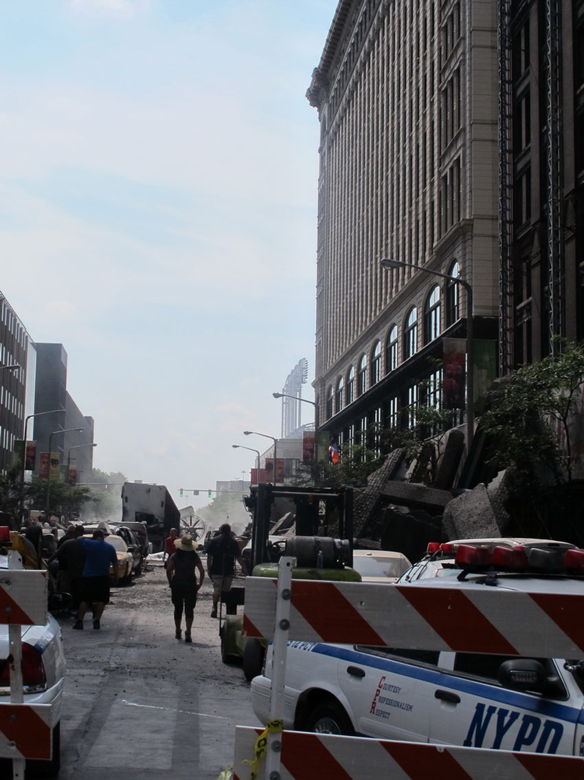 Aunque las imágenes parecen el resultado de otro de los apocalipsis climáticos/sismícos/terroríficos del 2010-2011 a los que nos estamos acostumbrando cada vez más, se trata realmente de un decorado Hollywoodense donde aparentemente se destruye una ciudad para adornar su pantalla, como vemos en la larga lista sobre películas haciendo añicos Nueva York (¿conoces otras películas que no estén aquí?) o en las impresionantes fotografías de un Chicago hecho pedazos por el bombástico Michael Bay, en el rodaje de «Transformers: Dark Side of the Moon» hace un año atrás.