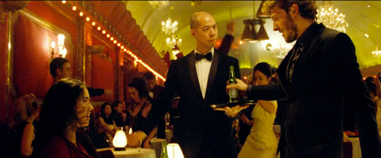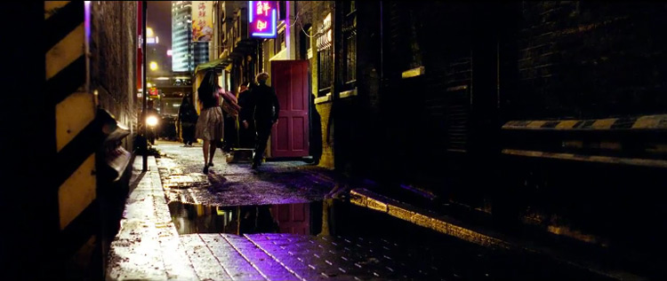 Nuevamente se repite el concepto del acceso a un lugar espectacular, oculto en la ciudad. Quizás no lo sabes, pero en un oscuro pasaje puede haber una gran fiesta. Inmediatamente se me viene a la mente la famosa escena de acceso a un restaurante, filmada en un glorioso Steadicam y en plano secuencia, donde Ray Liotta invita a su chica, interpretada por Lorraine Braco, a una cena en «Buenos Muchachos» (Goodfellas) de Martin Scorsese. Si bien el tono no es el mismo, el objetivo -al entrar por la cocina, saludar a todo el mundo, etc.- sí lo es: ¡impresionar a la chica!.