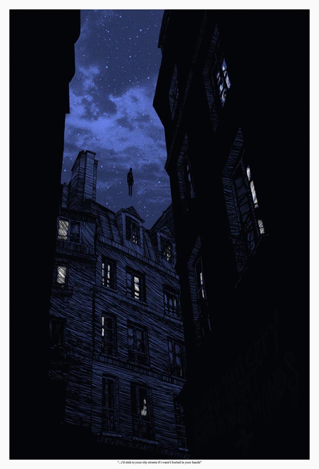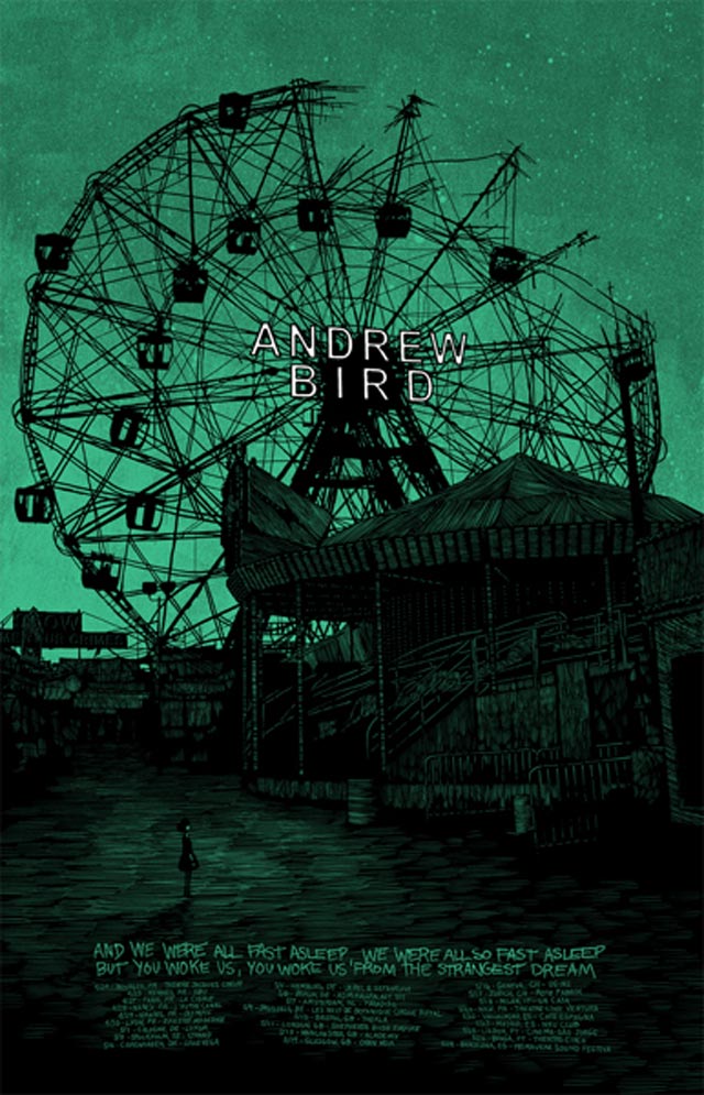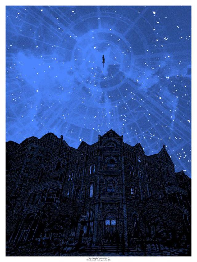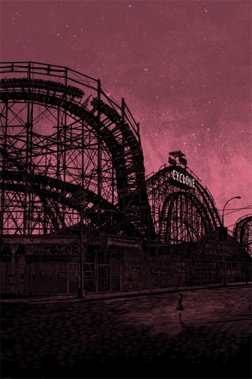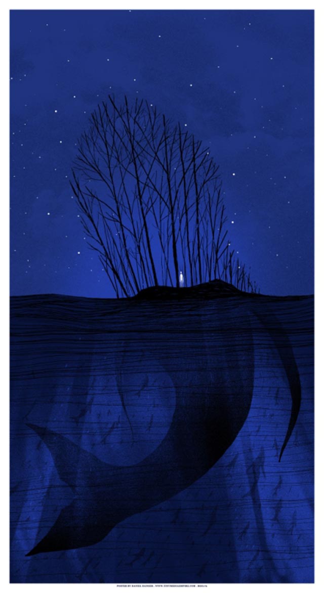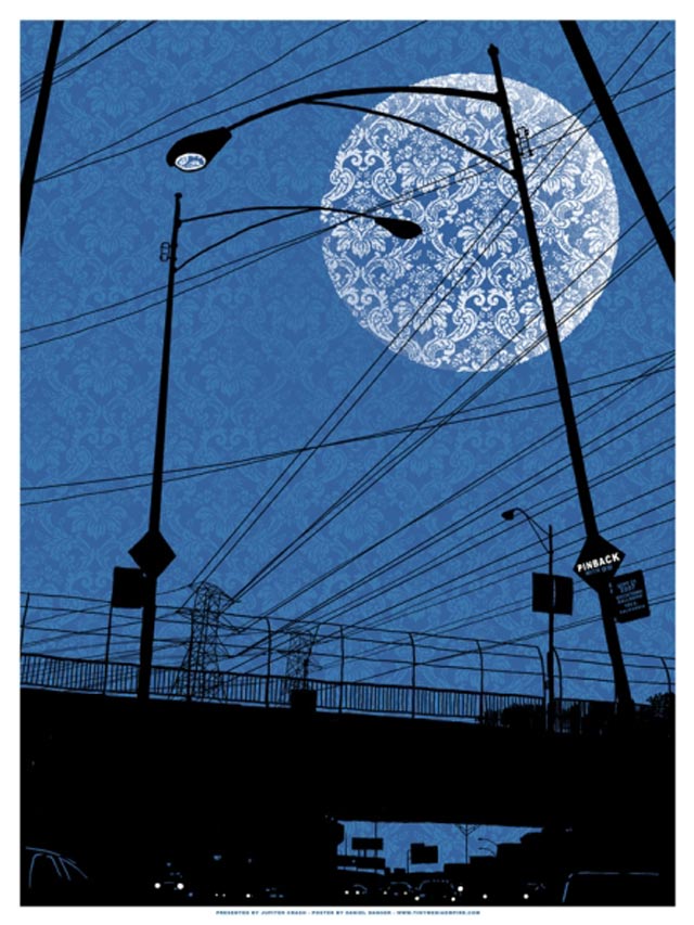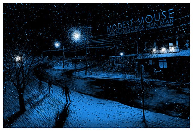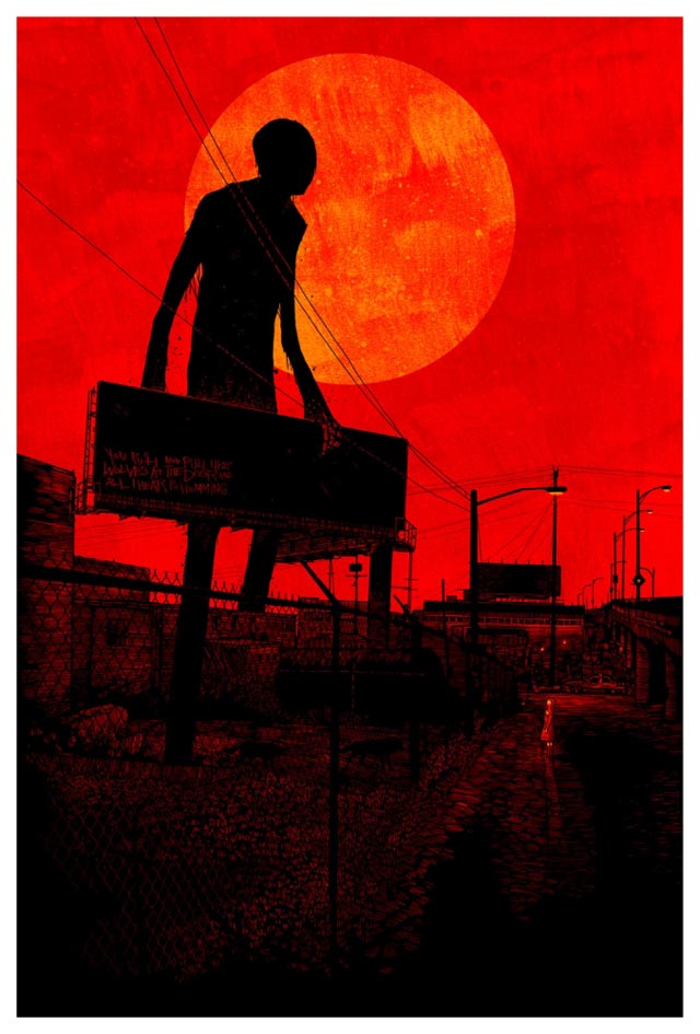 Con ilustraciones para afiches especiales de «The Royal Tennenbaums» de Wes Anderson, «The Wolfman» de Joe Johnston (esa poco apreciada pequeña joya en bruto, de mounstroso cine B, que gocé el año pasado), la serie de zombies favorita de todos, «The Walking Dead» y un maravilloso afiche para «Cowboys & Aliens» de Jon Favreau, Danger está coqueteando con éxito con el cine. Pero es sin duda en la música, donde este notable ilustrador ya se ha hecho un nombre. Daniel ya ha ilustrado para bandas y solistas como Modest Mouse, The Decemberists, The Pogues, Built to Spill, Converge, Pinback, Fall Out Boy, Silver Jews, Grails, Nada Surf, Snow Patrol, Silversun Pickups, The Rapture, The Assailant, Aloha, Saves the Day, Minus the Bear, The Walkmen, Funeral Diner, The Arcade Fire, Hot Cross, Kelly Osbourne, Bravo Fucking Bravo, Poison the Well, Hot Hot Heat, The String Cheese Incident y muchas más.