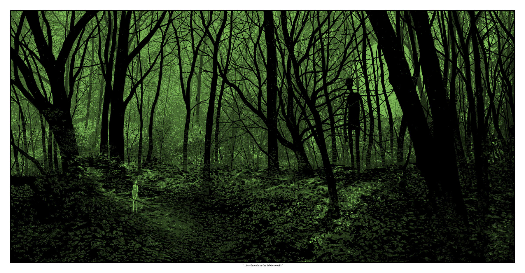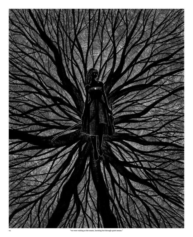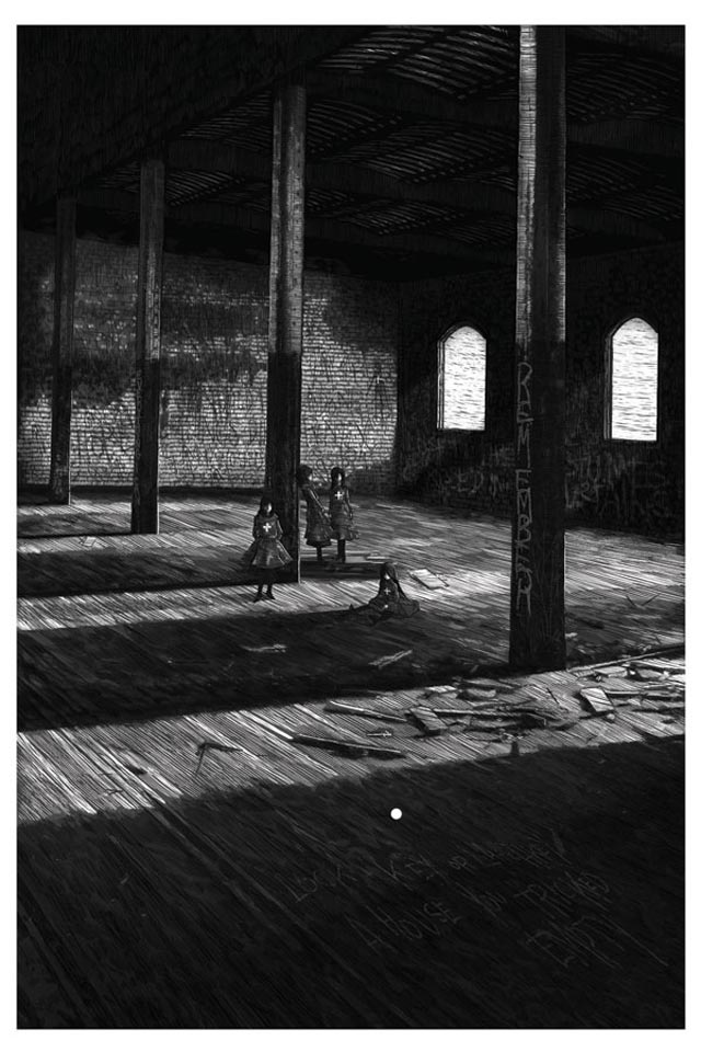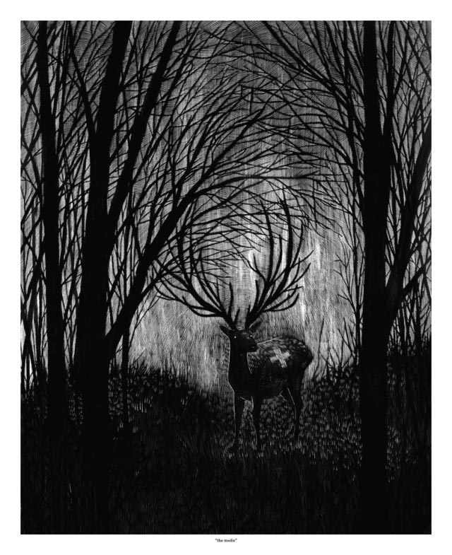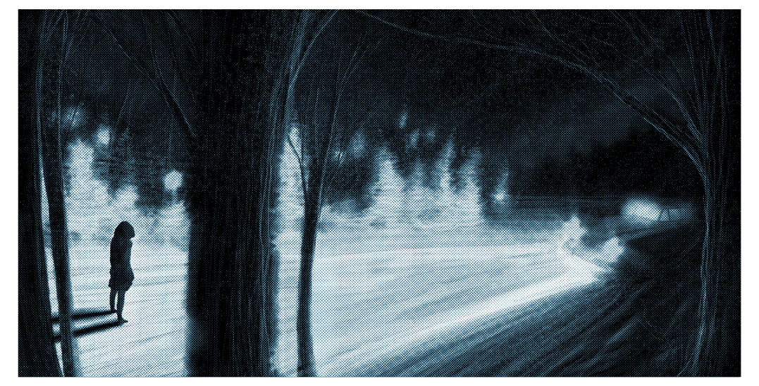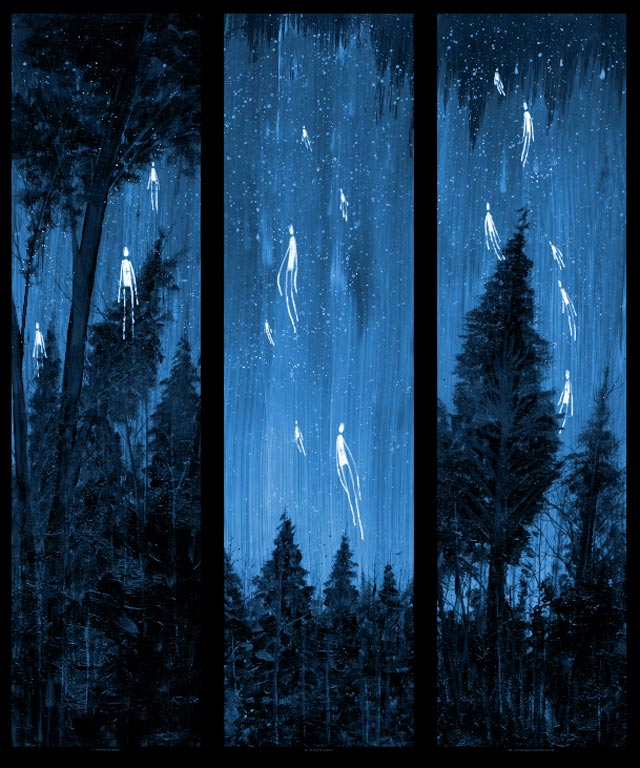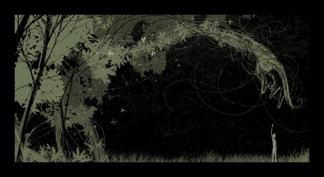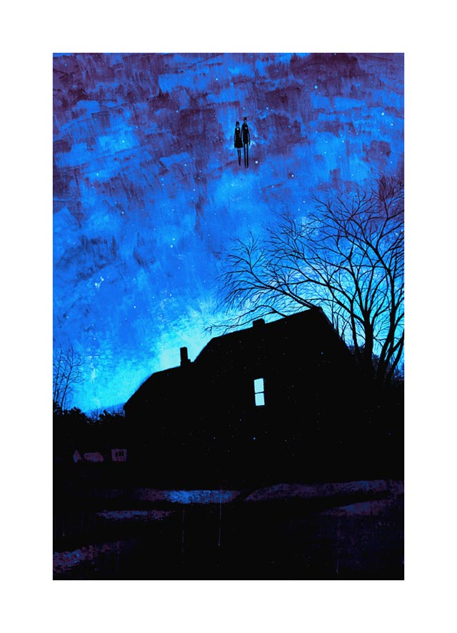 He quedado realmente atónito viendo el trabajo de Daniel Danger, un joven ilustrador que trabaja desde las frías tierras de New England, en el extremo nor oriente de EE.UU. Atmósferas sombrías, de nocturnas y somnolientas pesadillas, en fríos parajes. Bosques pacientes e infinitamente achurados. Abducciones silenciosas. Las luces de un automóvil iluminando misteriosas figuras de la noche. Una niña y un gigante que la sigue. Visiones que, en el fino trabajo de Daniel Danger, te aseguro se quedarán impregnadas en tu mente.