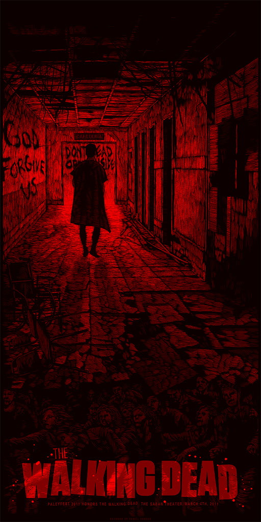Con ilustraciones para afiches especiales de «The Royal Tennenbaums» de Wes Anderson, «The Wolfman» de Joe Johnston (esa poco apreciada pequeña joya en bruto, de mounstroso cine B, que gocé el año pasado), la serie de zombies favorita de todos, «The Walking Dead» y un maravilloso afiche para «Cowboys & Aliens» de Jon Favreau, Danger está coqueteando con éxito con el cine. Pero es sin duda en la música, donde este notable ilustrador ya se ha hecho un nombre. Daniel ya ha ilustrado para bandas y solistas como Modest Mouse, The Decemberists, The Pogues, Built to Spill, Converge, Pinback, Fall Out Boy, Silver Jews, Grails, Nada Surf, Snow Patrol, Silversun Pickups, The Rapture, The Assailant, Aloha, Saves the Day, Minus the Bear, The Walkmen, Funeral Diner, The Arcade Fire, Hot Cross, Kelly Osbourne, Bravo Fucking Bravo, Poison the Well, Hot Hot Heat, The String Cheese Incident y muchas más.