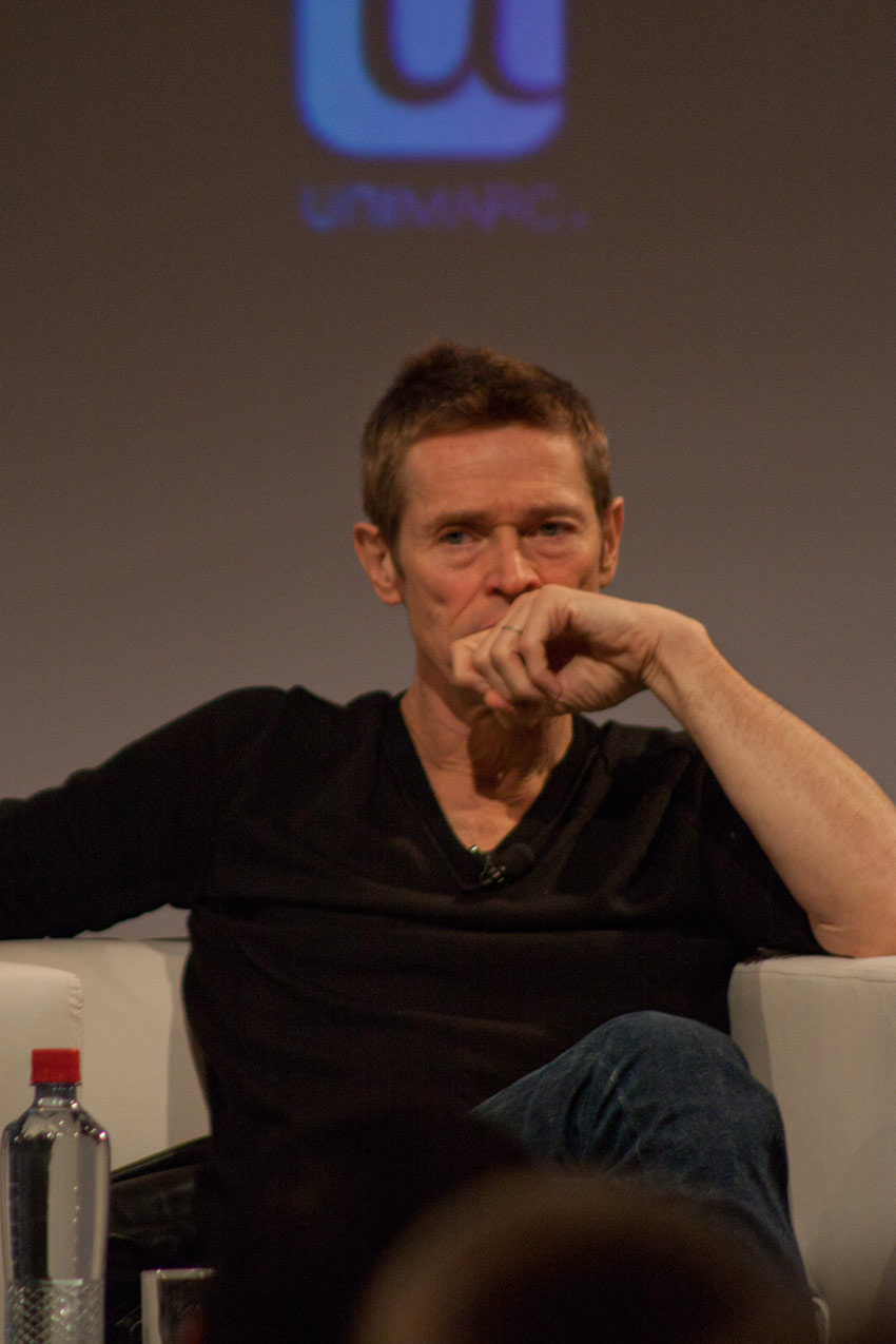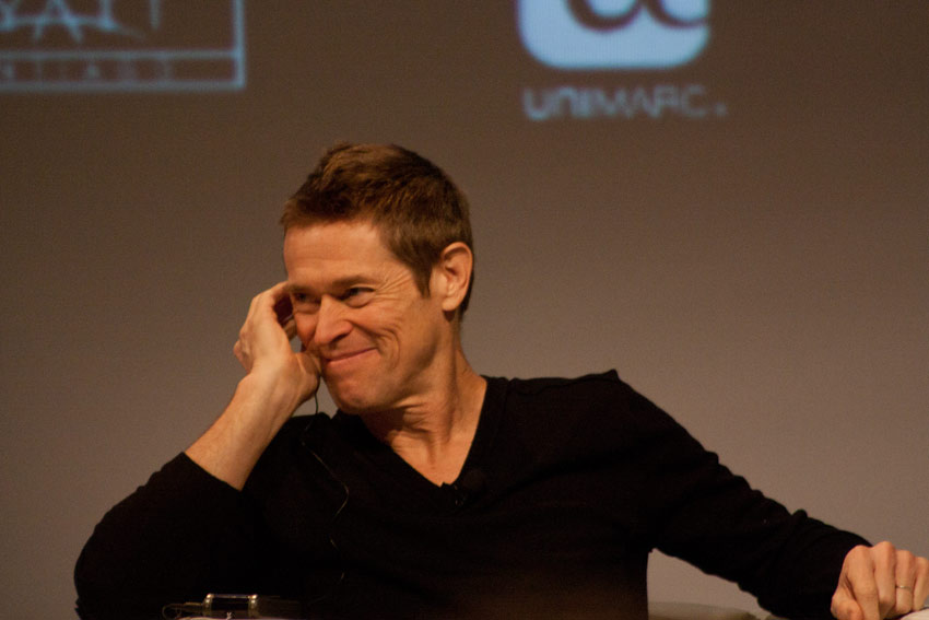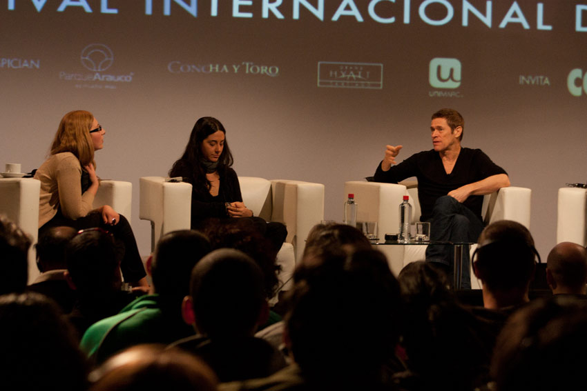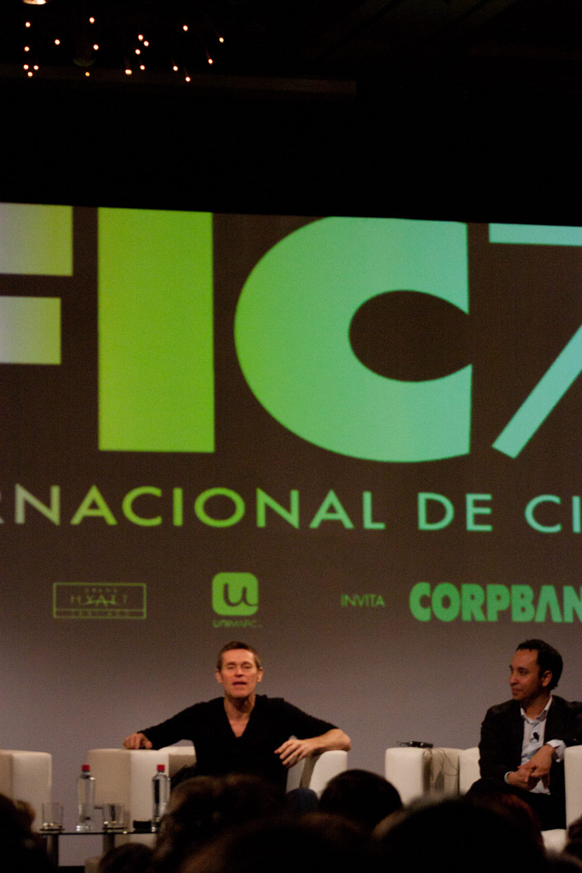 No sé si sería mi fiebre y sus alucinaciones correspondientes a ese estado, pero me pareció especialmente extraño, por no decir insólito y muy escueto, que a Willem Dafoe, un hombre por lo demás de muy buen humor, los dos moderadores presentes no le hicieran preguntas muy específicas, optando casi siempre por preguntas excesivamente generales. En algunos casos reiterativas también, como por ejemplo, aquellas sobre su relación con la industria más mainstream de Hollywood y aquella independiente; una alternancia que este actor domina especialmente. Dafoe, por su parte bastante sintético en sus respuestas, con este tipo de preguntas no podía elaborar mucho más allá, coincidiendo en sus respuestas con lo que uno podría esperar de un sinnúmero de actores en la misma situación. Aquí había que hincarle el diente. Dafoe es un actor que ha trabajado con directores de la talla de David Lynch, Martin Scorsese, Wes Anderson, David Cronenberg, Oliver Stone y Lars von Trier, y no ahondar especialmente en ninguno de ellos, me pareció, personalmente, muy poco afortunado. Raro, pues los montajes en video que se mostraron de su carrera, muy bien hechos, sí mostraban en detalle escenas de varias de estas películas. Extraño también, siendo que los mismos dos moderadores habían mostrado un trabajo muy detallado y de excelencia en el encuentro con el actor Ricardo Darín, el sábado anterior a este evento; una conversación memorable. Lamentablemente además, una de las moderadoras estaba afónica, así que eso ya la restringía bastante en cualquier tipo de intercambio vocal.